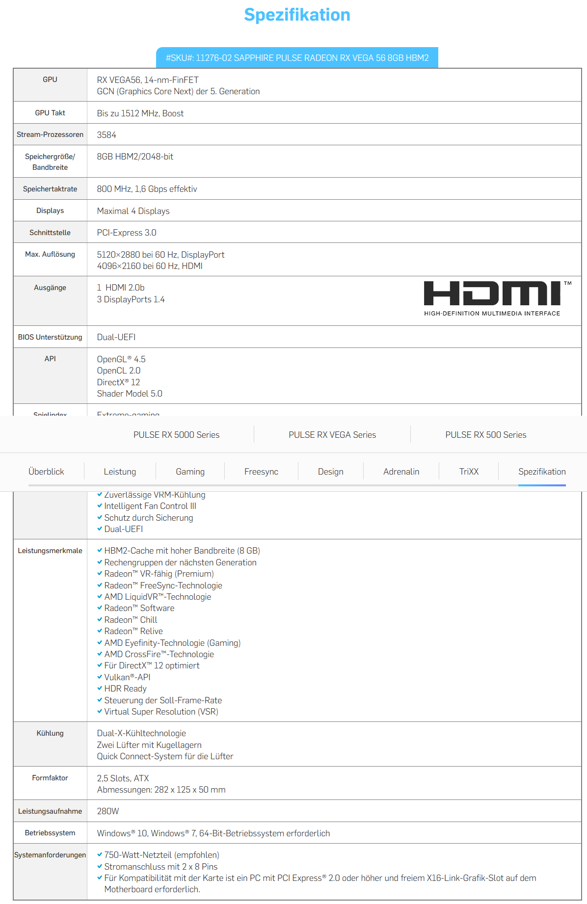 Siehe Sapphire Spezifikationen zur Pulse. Auch wenn viele User hier keine Probleme mit schwächeren Netzteilen haben so bleibe ich bei meiner Einstellung, mich an die Vorgaben des Herstellers zu halten. Ferner gibt es bei der Vega 56/64 die allseits bekannten Probleme mit den Lastspitzen die manche Netzteile überfordern können.