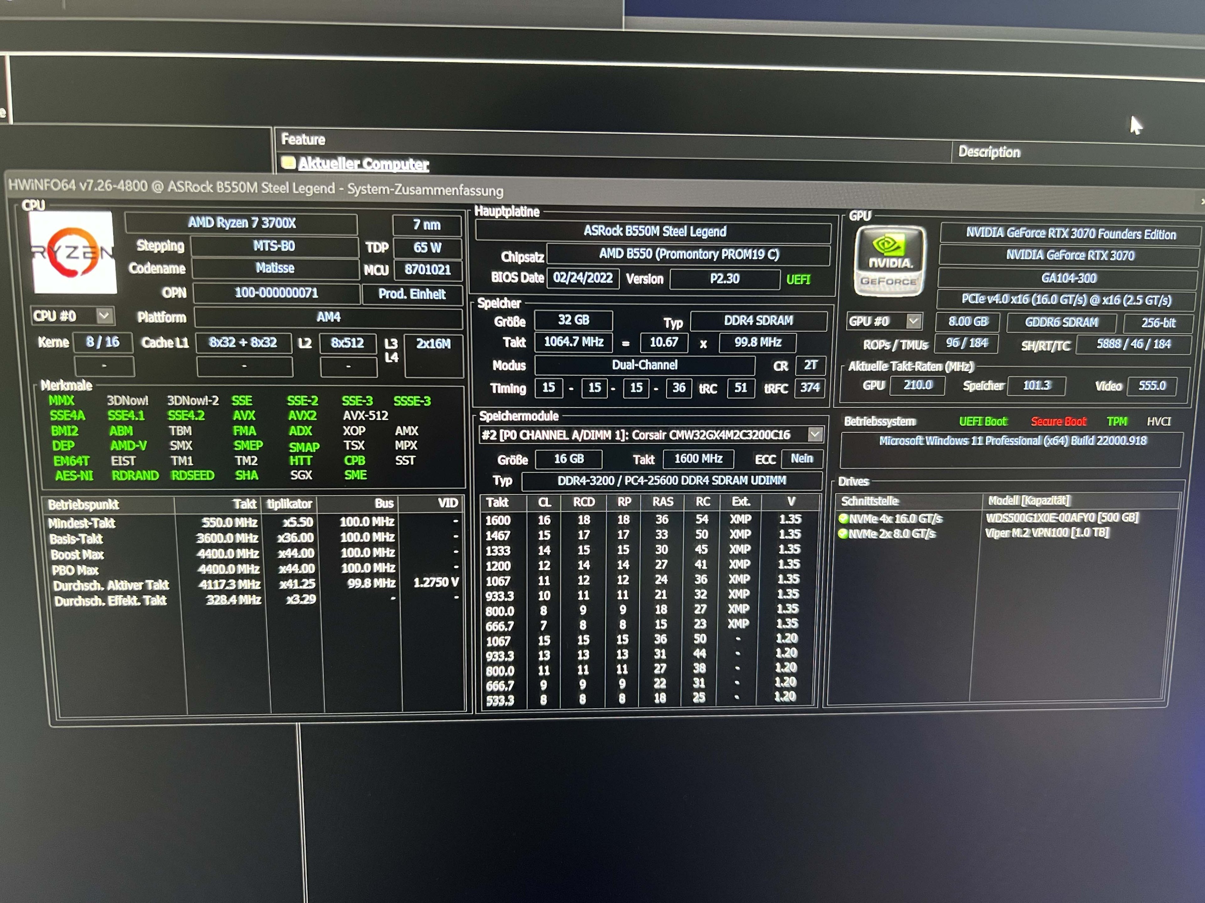 - Arbeitsspeicher (RAM): 32GB Corsair Vengance RGB PRO