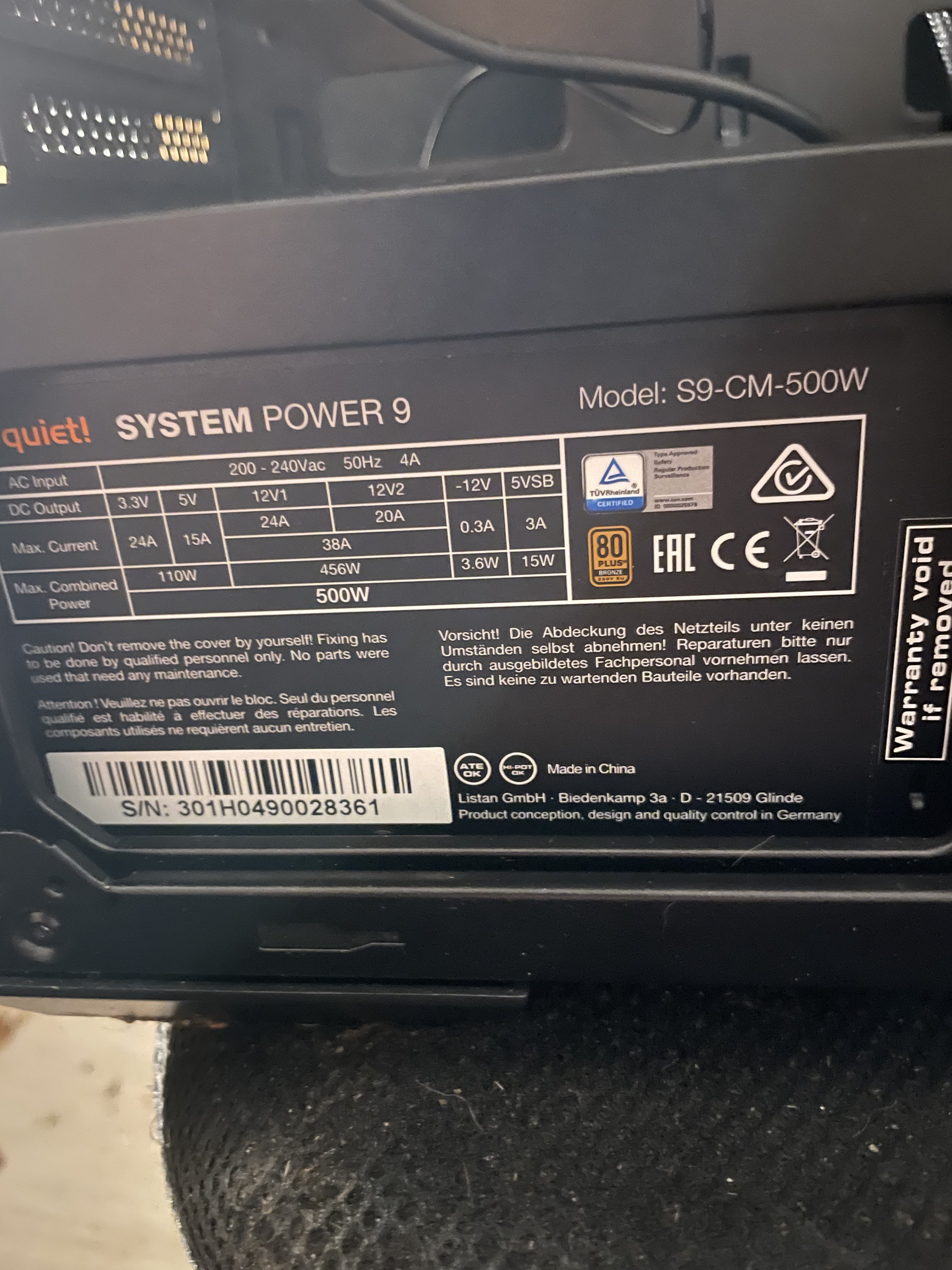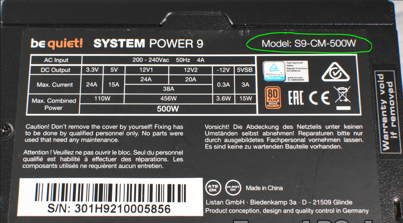 Hier noch ein Bild vom Netzteil "ohne" die fehlenden, zwei PCIe Kabel.