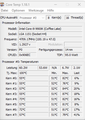 Core Temp sieht selbst nach längerer CPU Belastung immer noch so aus: