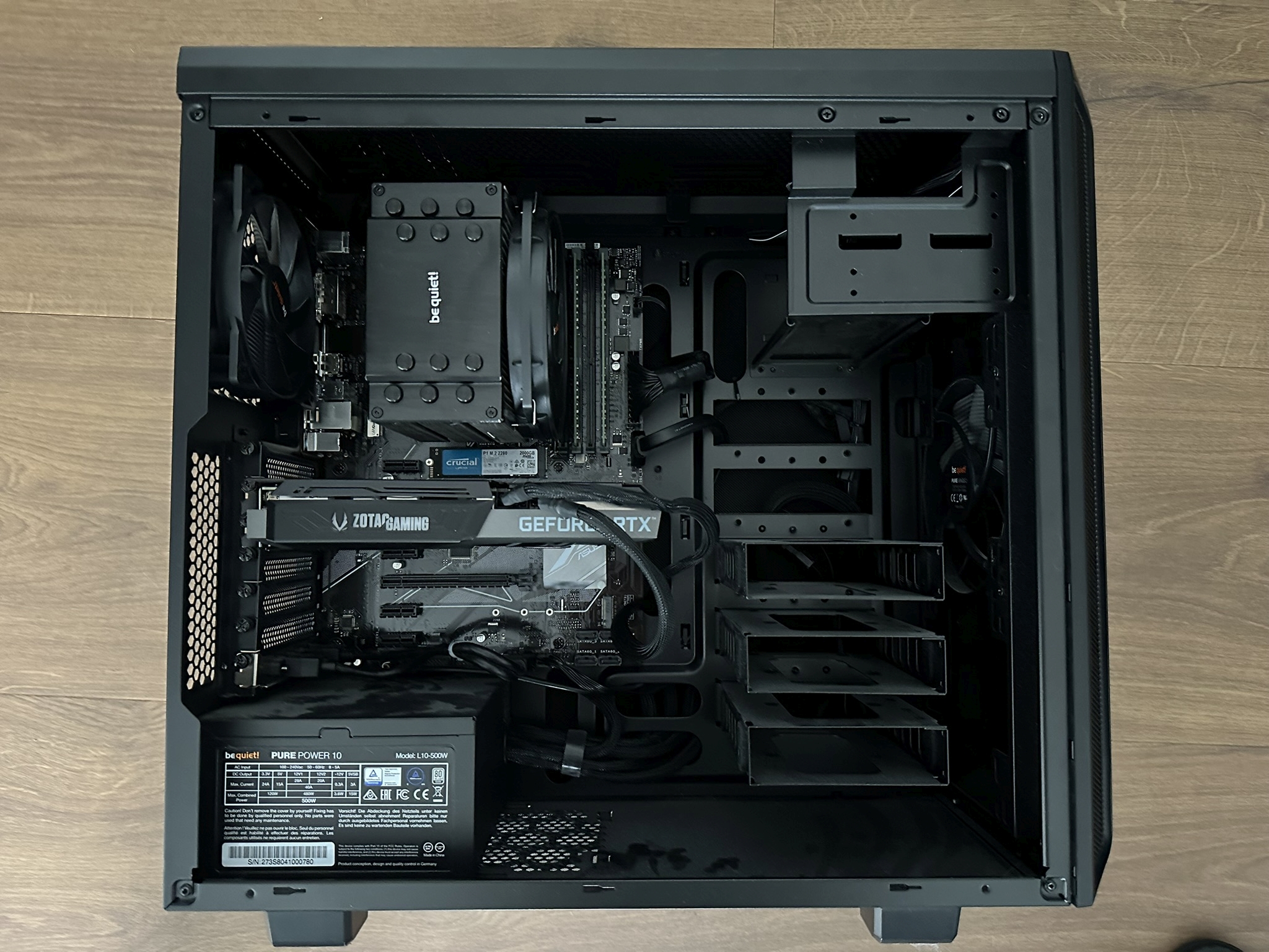 - HDD Käfige (E) komplett raus (bei Bedarf den untersten lassen)