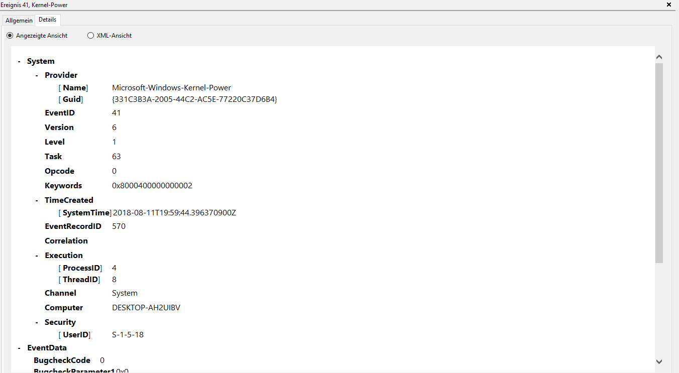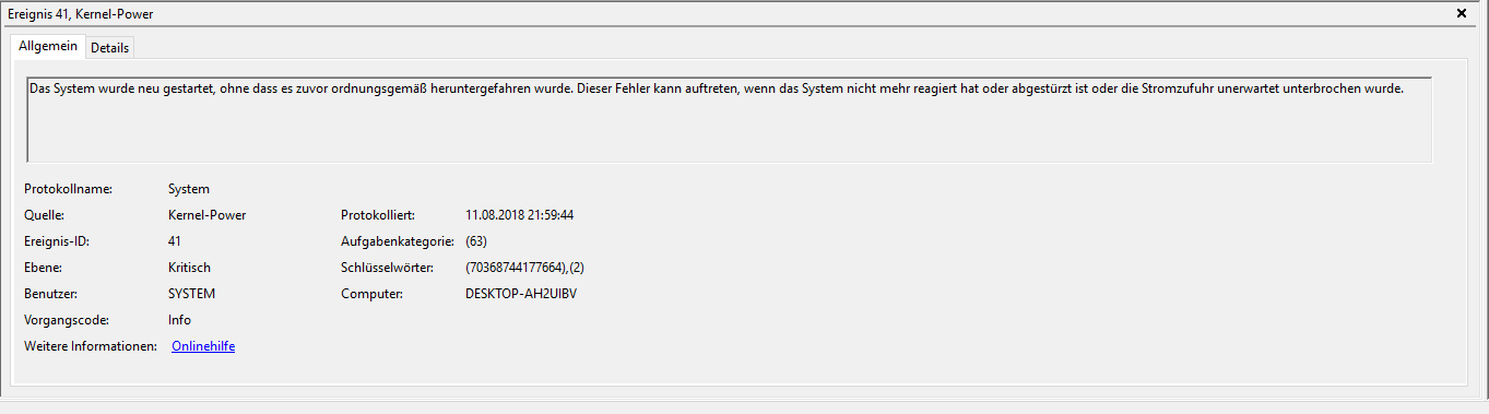 Bisher gehe ich davon aus, dass ich mein Netzteil auswechseln müsste. Doch da ich mich mit den Fehlermeldung bei der Ereignisanzeige usw. nicht so auskenne bin ich mir nicht sicher...