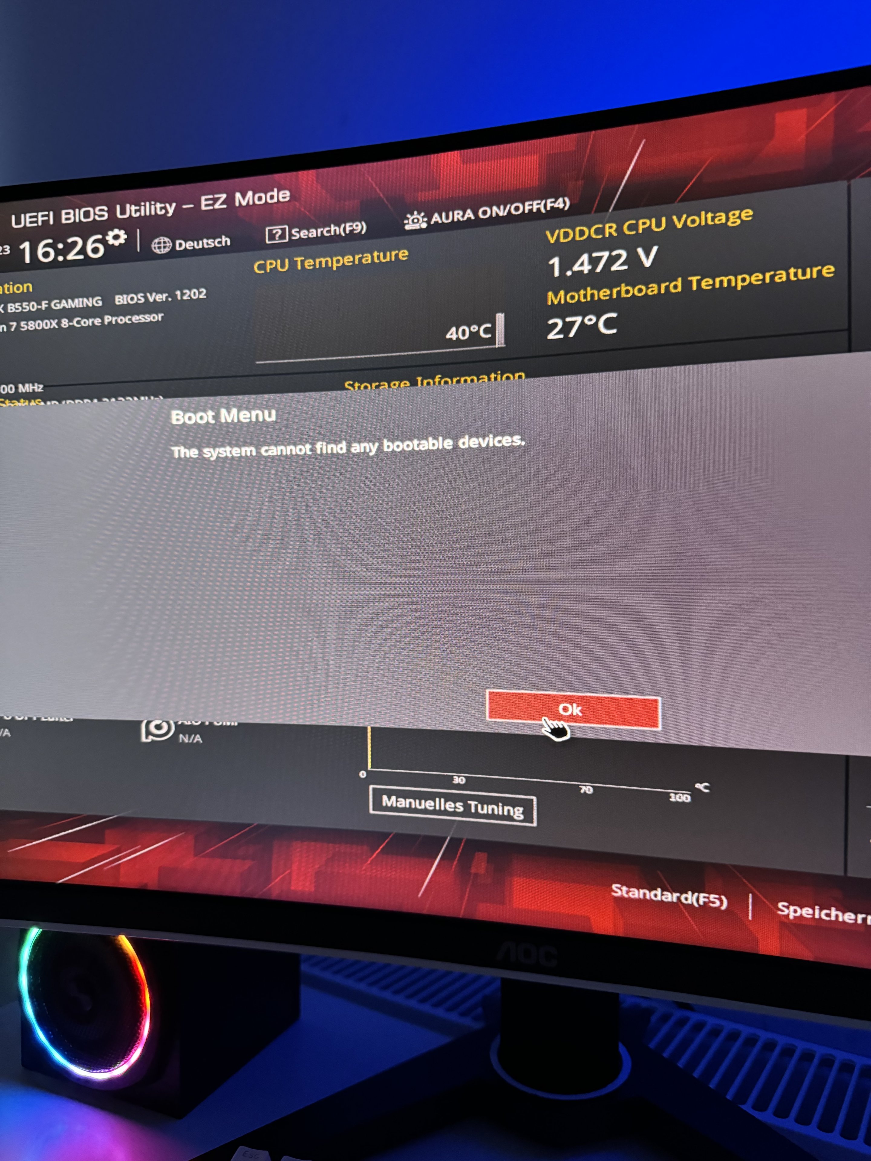 /edit// Während ich diesen Beitrag verfasse, ist jetzt mein Pc endgültig fällig.. 🤣 Pc läuft nur noch im Bios erkennt kein Bootsystem