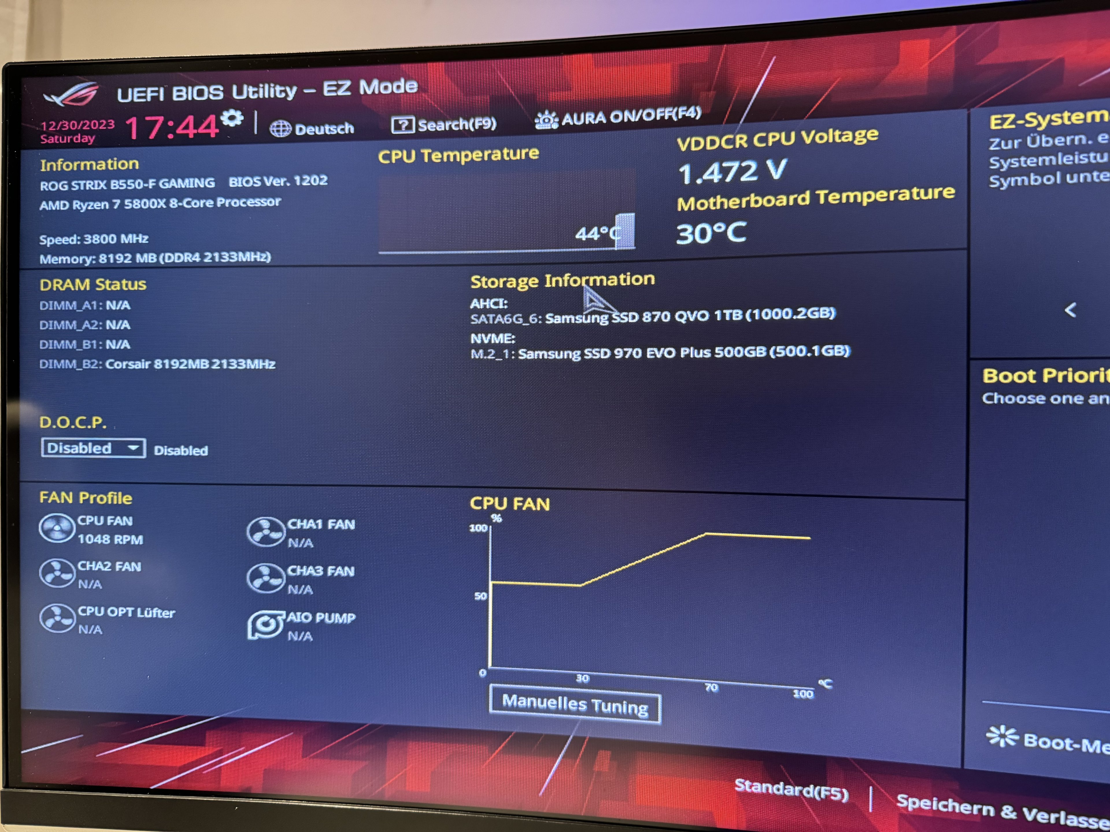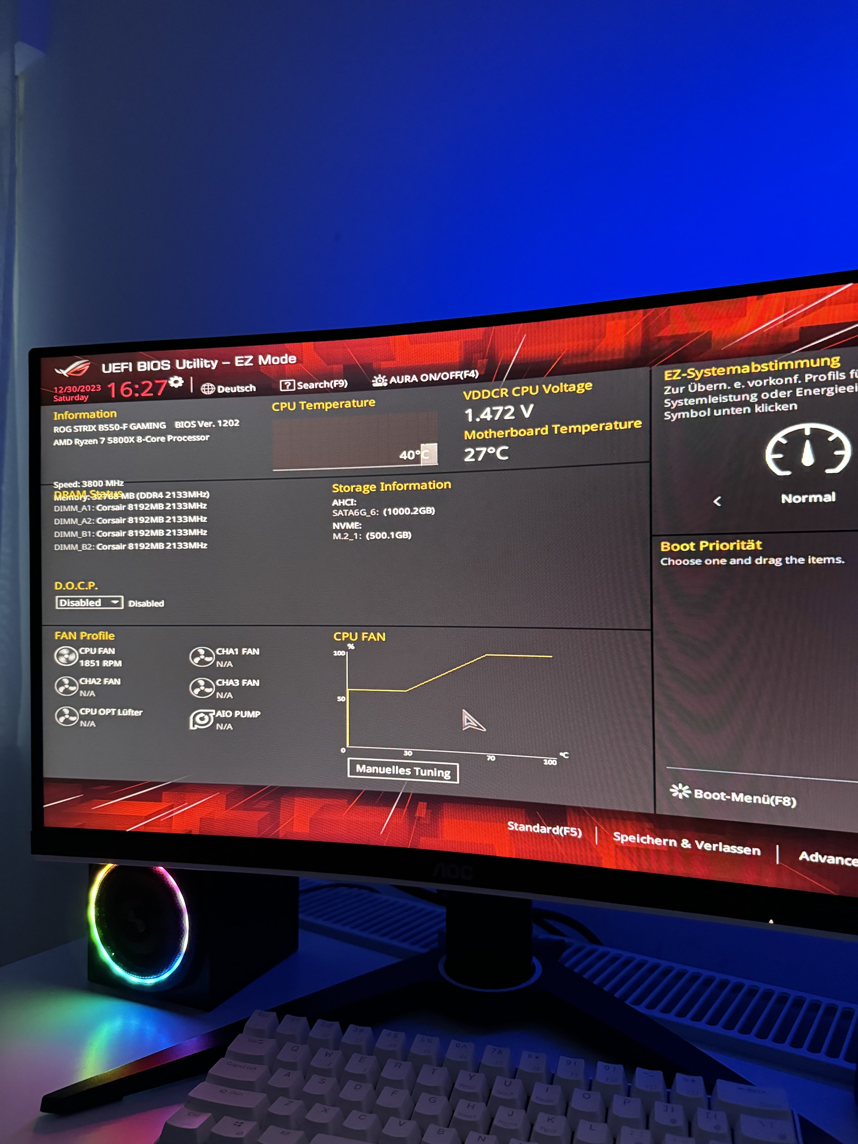 - Mainboard: ROG Strix B550-F Gaming