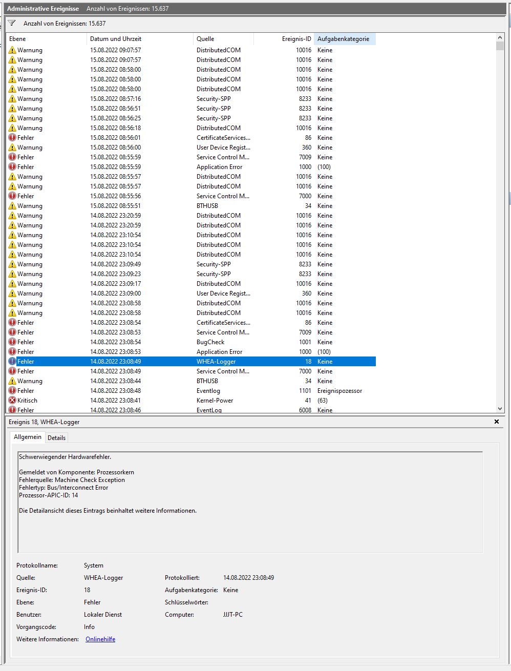 Heute Morgen habe ich in die Ereignisanzeige von Windows geguckt und es sieht sehr wild aus. (Siehe Bild 2)