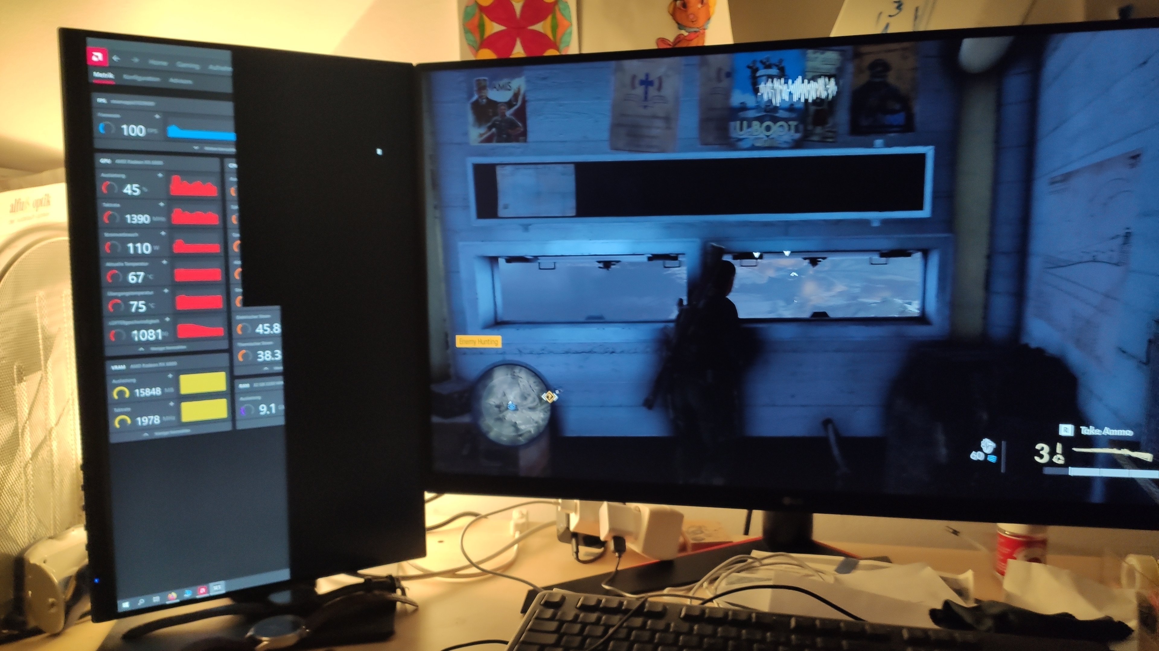 Vor knapp 2 Wochen fing das Problem an, dass der PC beim spielen aufwändigerer Spiele (Sniper Elite 5, Metro Exodus enhanced edition) zwischen 5-15 Min Spielzeit hängen bleibt (siehe Bild 1), der Sound klingt zerhackt und nach etwa 10 Sekunden startet der PC neu.