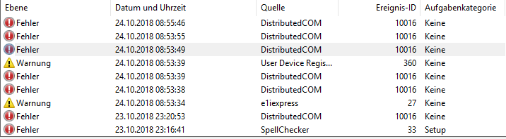 Die "DistributedCOM -10016" Fehler in der Ereignisanzeige kannst du alle getrost ignorieren,