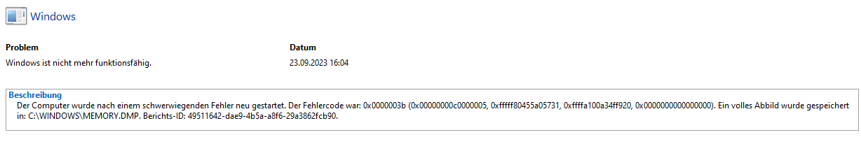 Bis gestern sind dann tatsächlich keine Fehler mehr aufgetreten und ich dachte alles wieder gut. Aber dann habe ich gestern, als ich den Pc gerade herunterfahren wollte erneut einen Bluescreen bekommen. Diesmal mit dem Code SYSTEM_SERVICE_EXCEPTION. Heute ist derselbe Fehler kurz nach dem Hochfahren wieder aufgetreten.