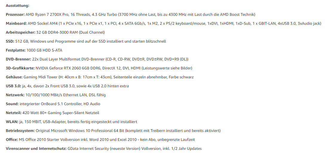 Ich habe mir vor etwa einer Woche einen Nagelneuen PC für ca. 1000€ gekauft, hier ein paar Eckdaten: