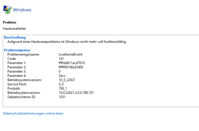 Ich hatte neulich eine kurze AMD-Fehlermeldung welche ich leider nichtmehr finde. Hat sich kurz geöffnet und ist dann wieder verschwunden....