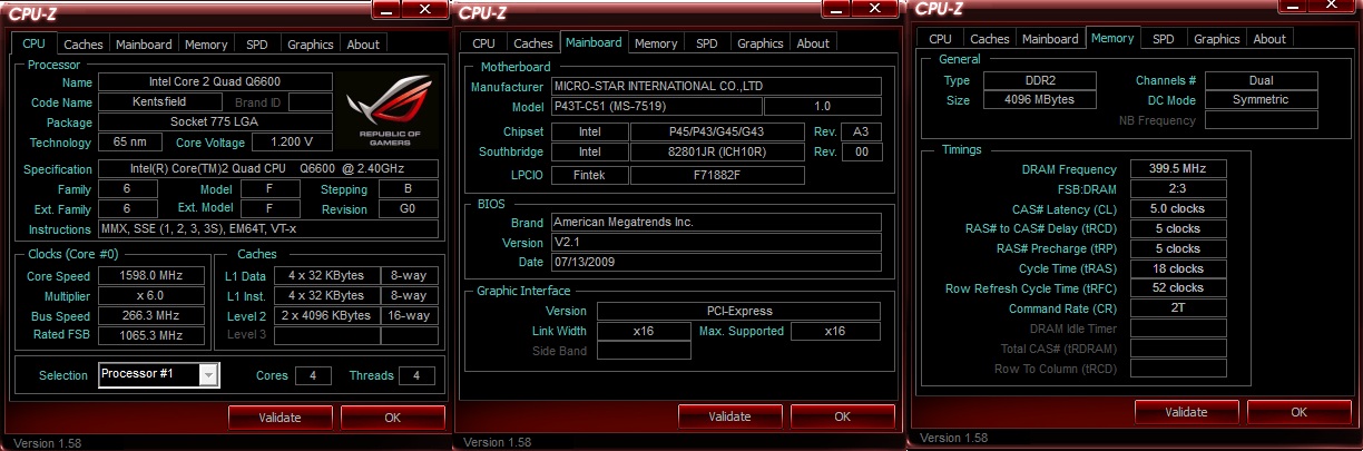 5) Ebenfalls würde ich gern mal einen Blick auf folg. Registerkarten von CPU-Z werfen: CPU, Mainboard, Memory und SPD.