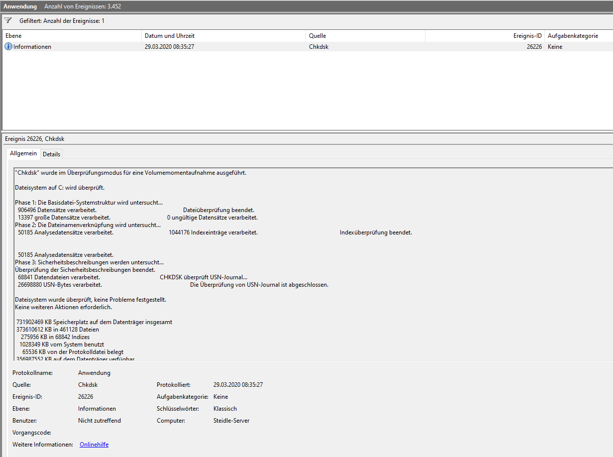 Das spricht irgendwo für ein Temperaturproblem. In der Ereignisanzeige bekomme ich aber eine Meldung mit "Harddsik9".