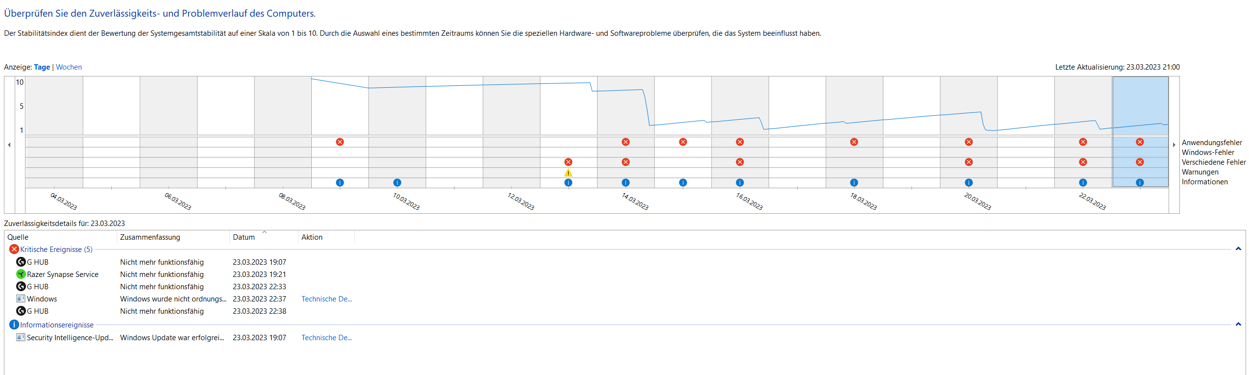 In den LOG Dateien von Windows steht als Fehlermeldung dann immer das Programm welches zu dem Zeitpunkt offen war.