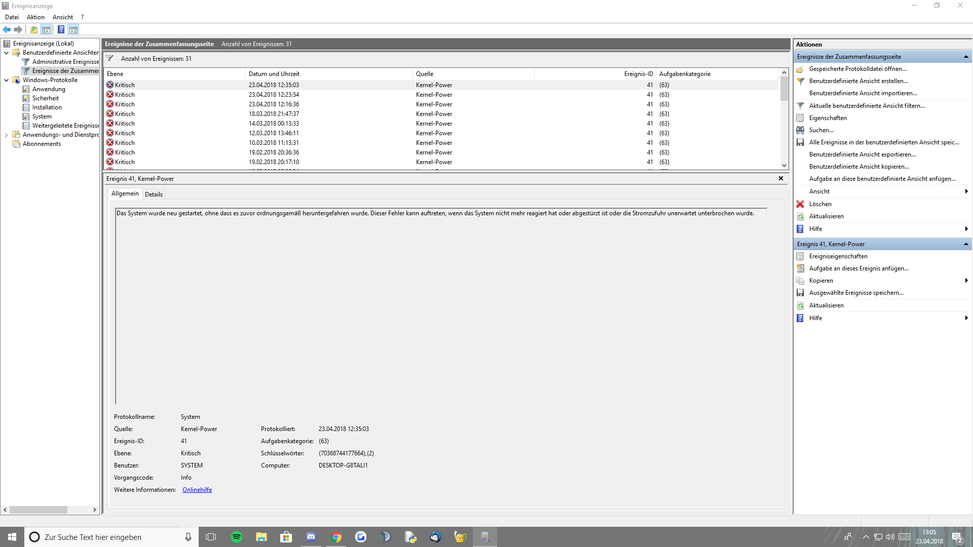 Genauer gesagt wird mein Bildschirm schwarz, der PC brummt laut vor sich hin und ich muss ihn manuell ausschalten. Heute hat er das alle 5-10 Minuten gemacht, bzw. sobald das Spiel wieder seit ein paar Minuten lief. Im Log wird unter Kritisch der Fehler System Kernel-Power 41 angezeigt. (