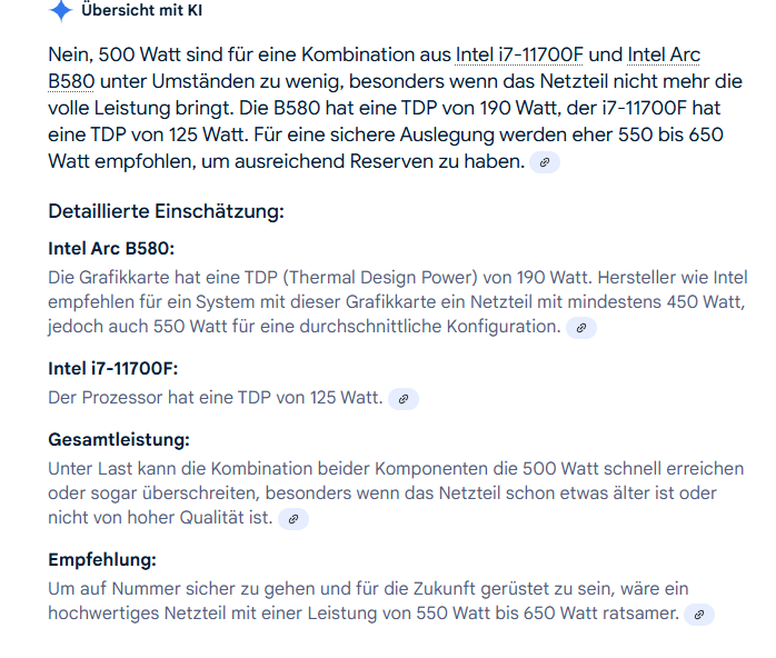 Und zu der Ki Antwort: Wenn man die maximale Leistungsaufnahme aller Komponenten zusammen rechnet, bleibt die Leistungsaufnahme auf unter 500 Watt. Ergo das Netzteil reicht.