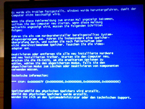 Dieser Fehler (0x0000007F: UNEXPECTED_KERNEL_MODE_TRAP) ist vermutlich auf einen Hardwaredefekt zurückzuführen. Aber schau mal selber nach: http://www.jasik.de/shutdown/stop_fehler.htm#A5
