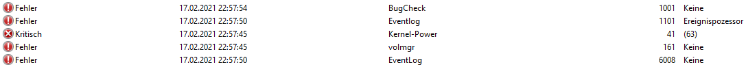 Habe den automatischen Neustart da jetzt mal deaktiviert. Denke aber, dass ich normalerweise keine Bluescreens hatte. Sonst waren da auch weniger Fehler in der Ereignisanzeige nach einem Neustart. Normalerweise glaube ich nur Kernel Power Ereignis-ID 41.