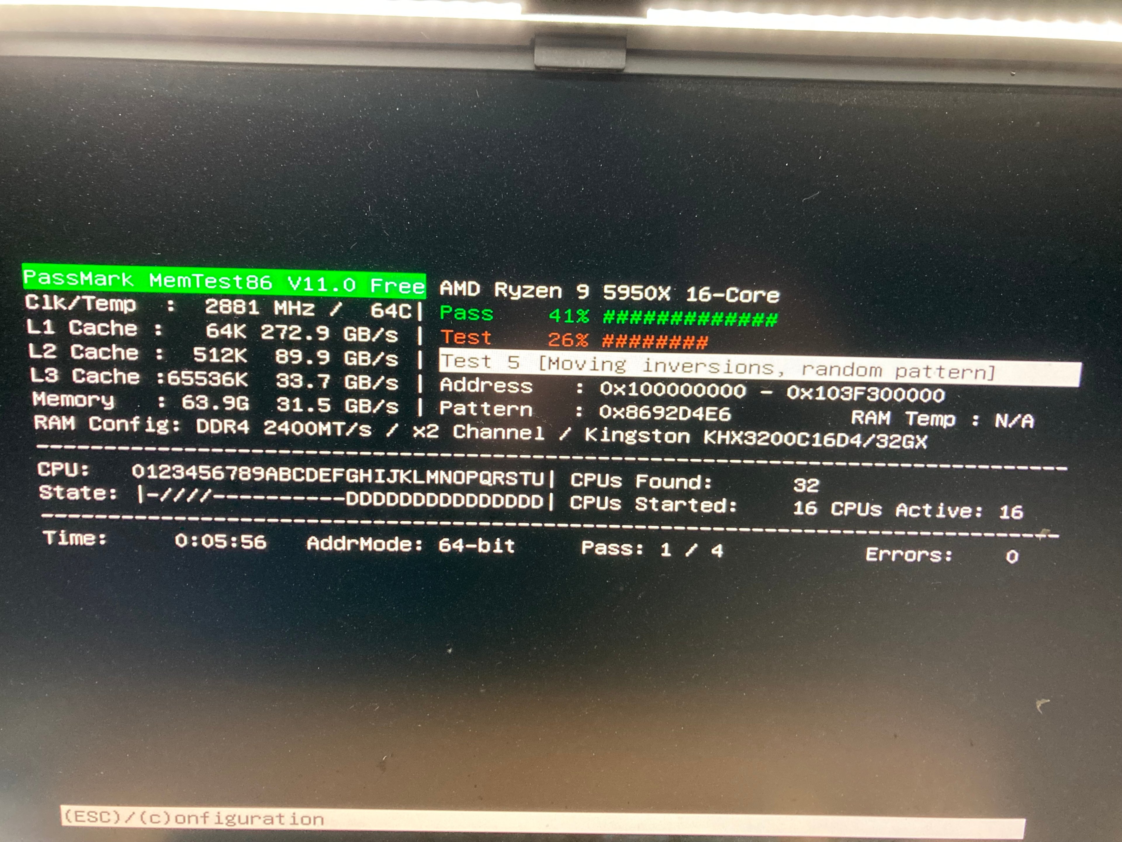 - Arbeitsspeicher (RAM): Kingston HyperX Predator DIMM Kit 64GB, DDR4-3200, CL16-19-19