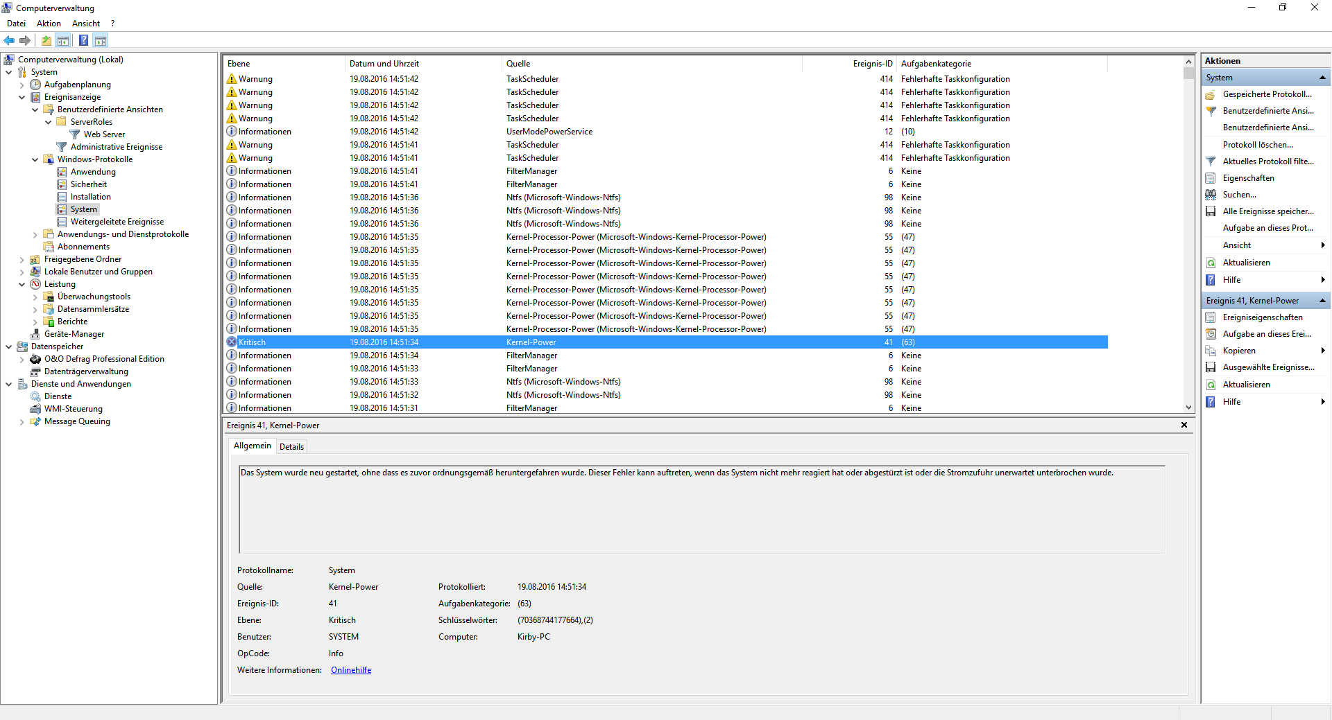 Ich habe mal unter den Windows Protokollen nachgeschaut was da stehen könnte. Ein Bild ist mit mit angehangen. Möglicherweise hilft dies aber nicht ganz genau weiter, richtig zu helfen wusste ich mir bei so einer Situation nicht.