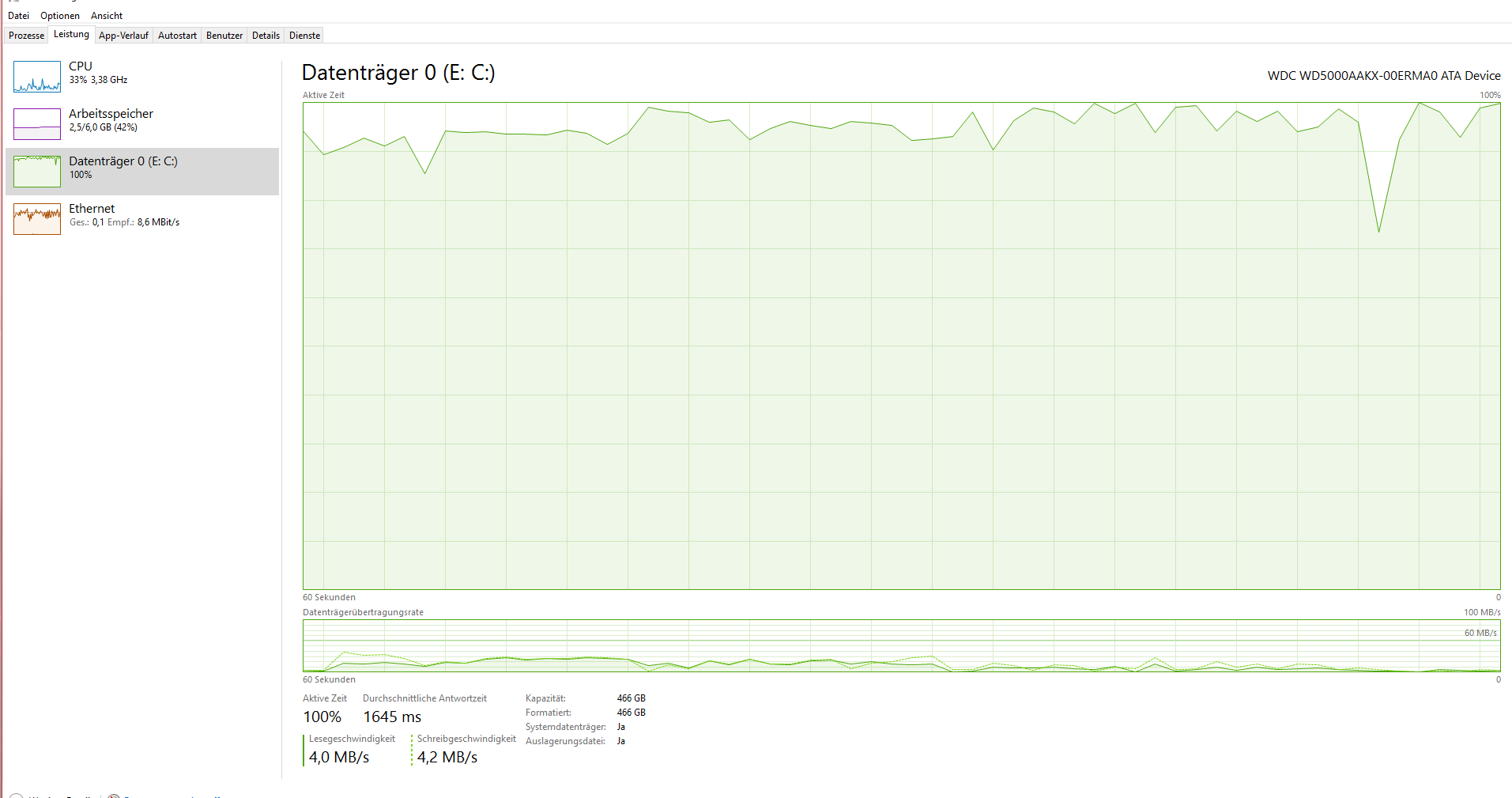 Mir ist zusätzlich aufgefallen das die Festplatte ziemlich ausgelastet ist und das obwohl nicht viel zu machen ist bzw. keine Anwendungen offen sind. Kann es seien das die Festplatte irgendwann nicht mehr hinterher kommt und deshalb alles abschmiert ?