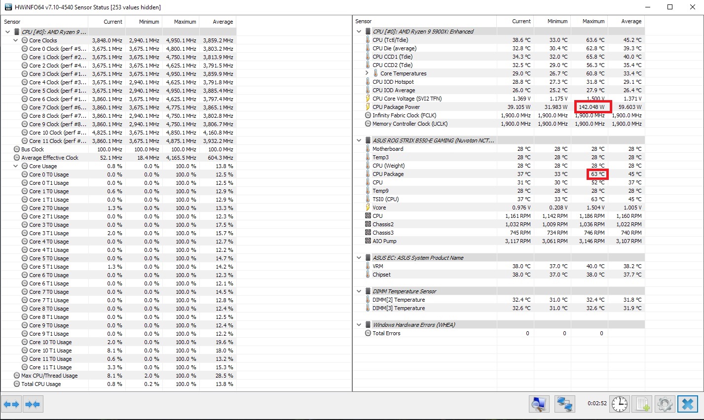 Ich würde bei der CPU nix rumtweaken, einfach die 142 Watt Standard lassen bzw die CPU ab Werk so lassen. In Games ist das sowieso etwas weniger. Bei BFV zum Beispiel dürfte so bei max ~120 Watt rum liegen auf vollen 64er Servern...