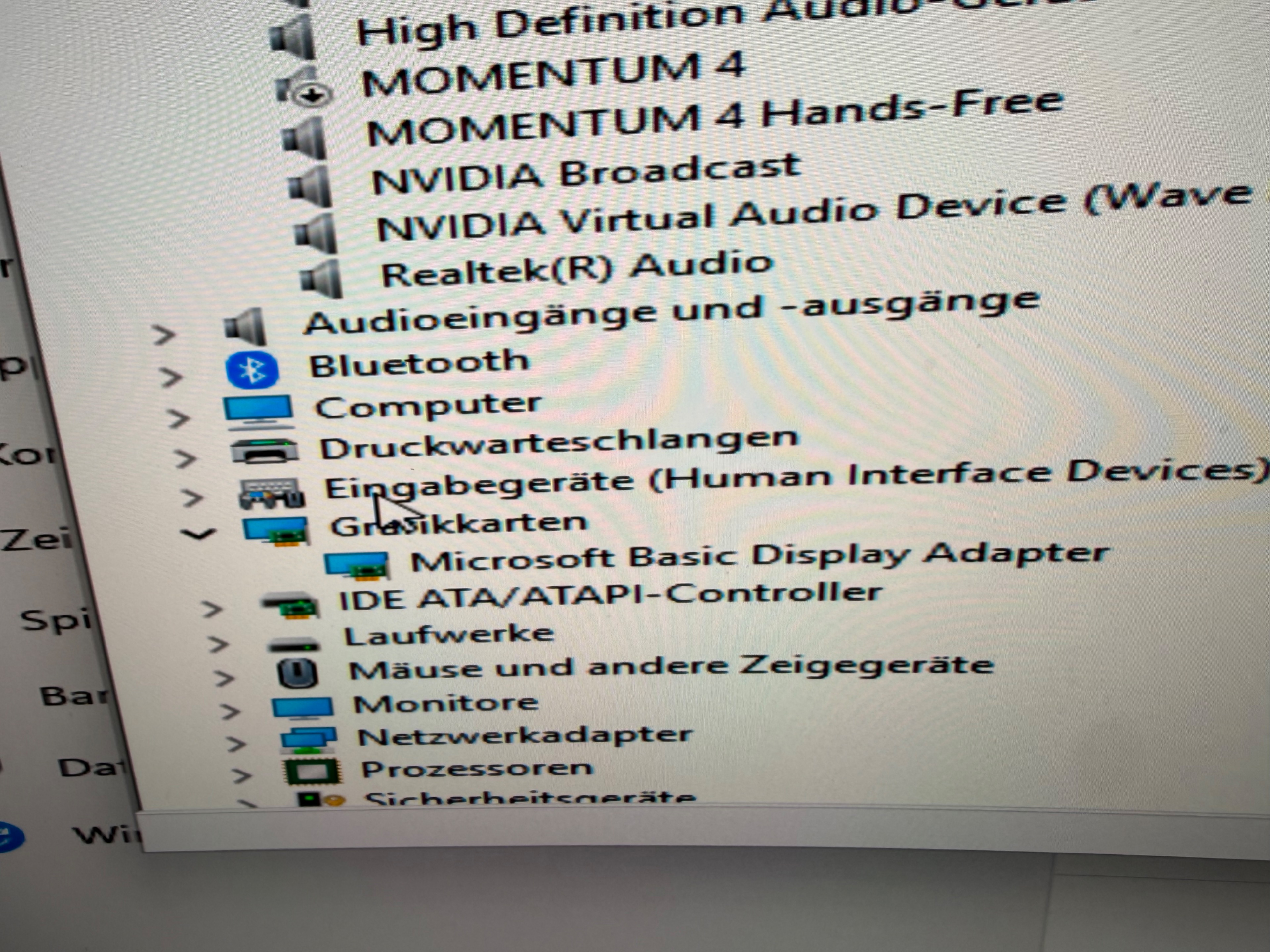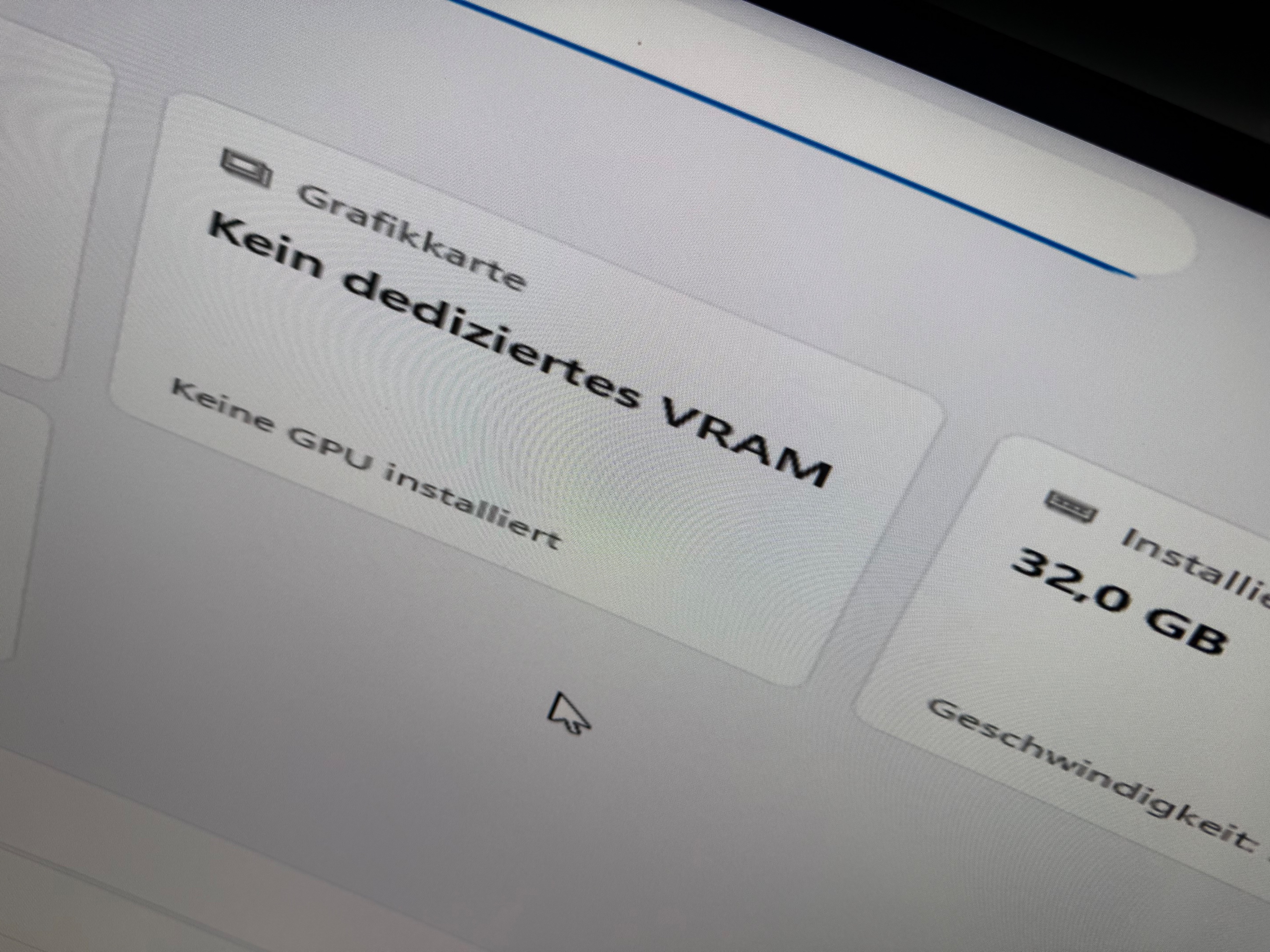 In Windows - "System" steht bei Vram auch "kein dedizierter VRAM". Im Geräte Manager wird "Microsoft Basic Display Adapter" angezeigt.