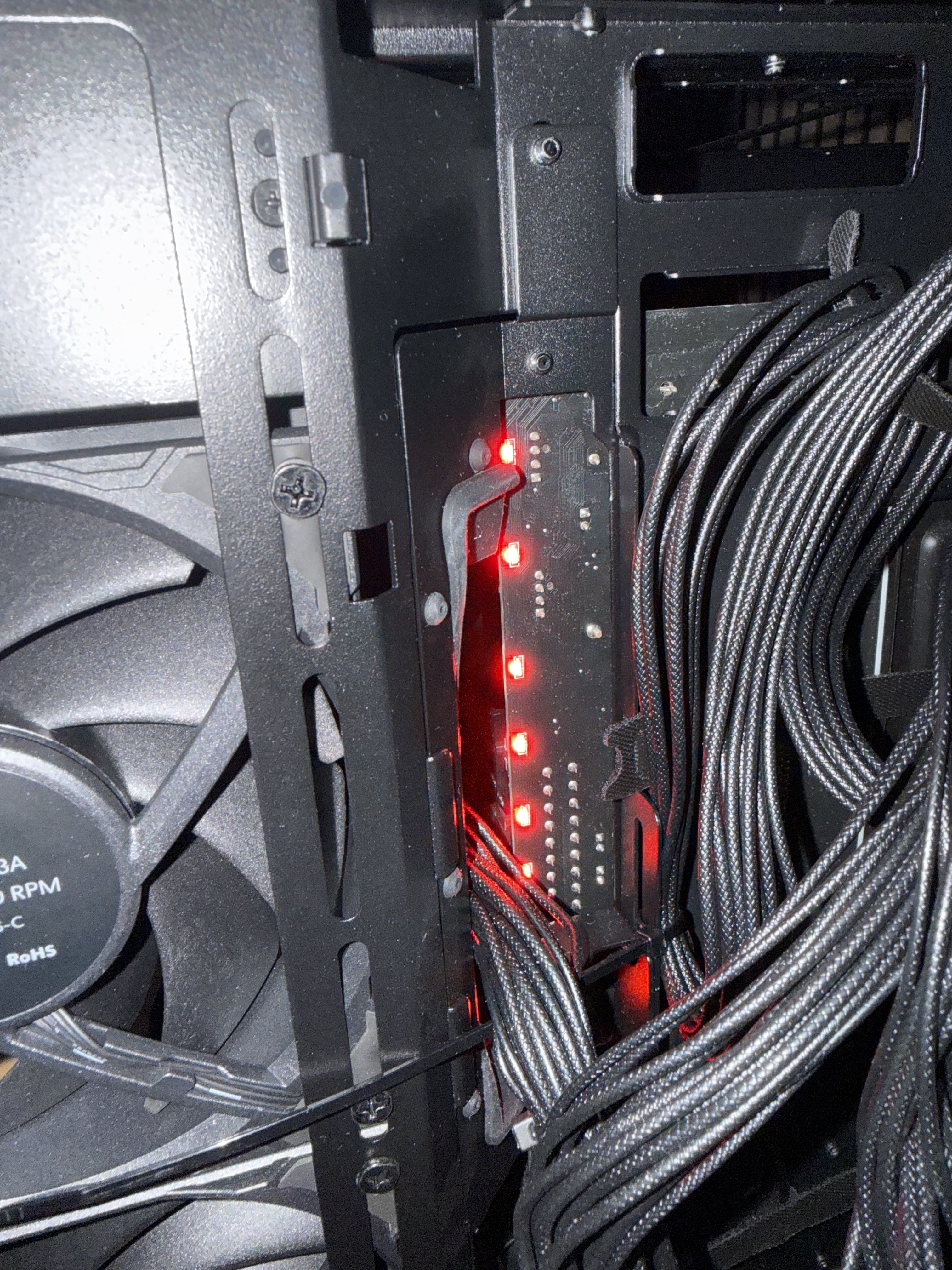 Mein letzter PC Zusammenbau ist 6 Jahre her, daher war ich bisschen überfordert mit all den kleinen Käbelchen usw. aber ich denke ich habe alles korrekt eingesteckt und der PC ist auch ganz normal gestartet. Gehäusekühler und auch GPU Kühler drehen sich, RGB von der GPU leuchtet auch.
