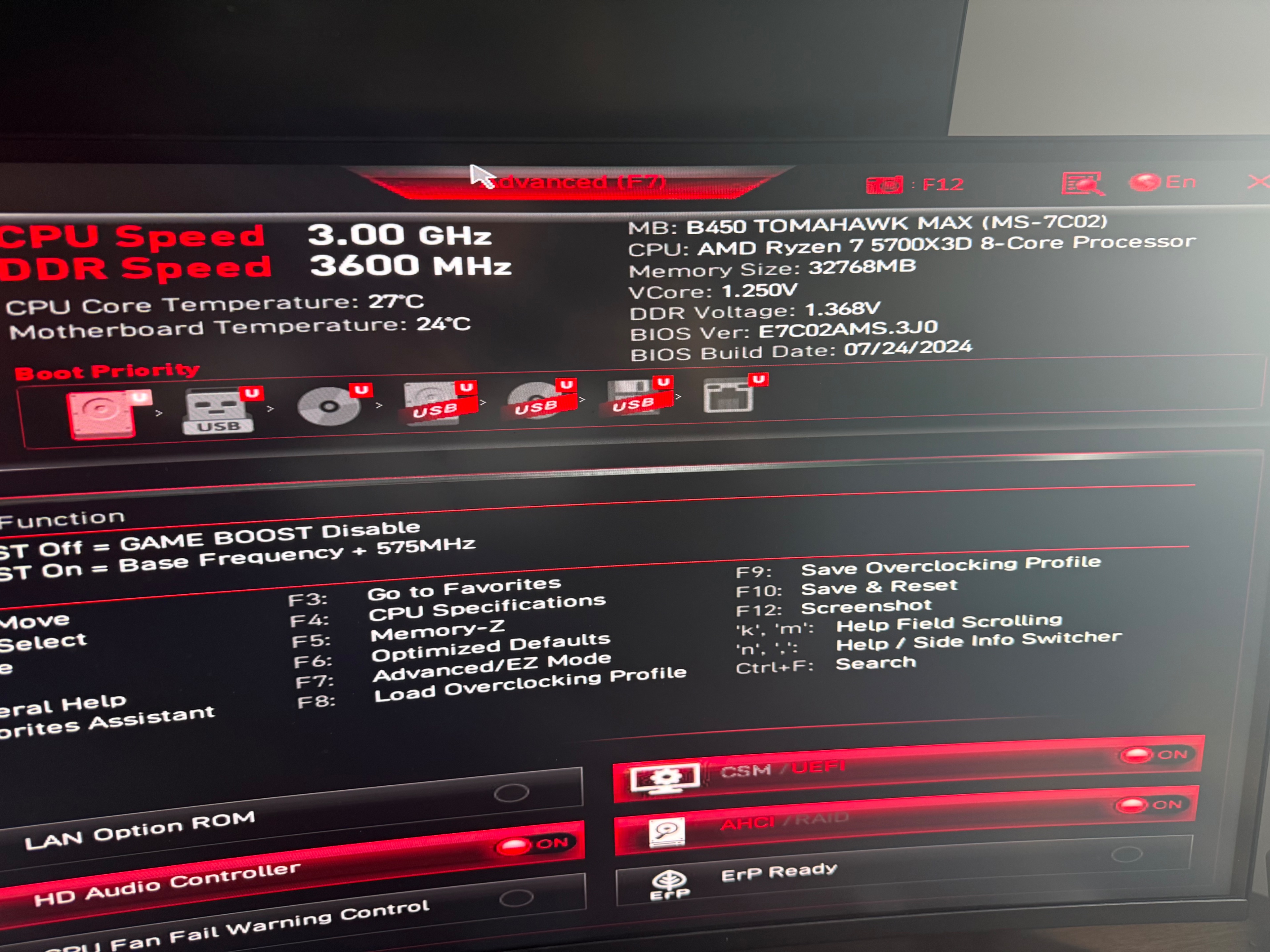 Ich habe nichts in BIOS oder sonst was geändert.