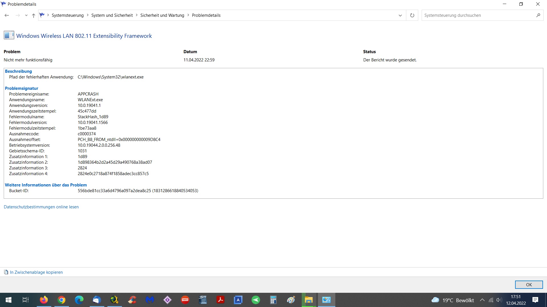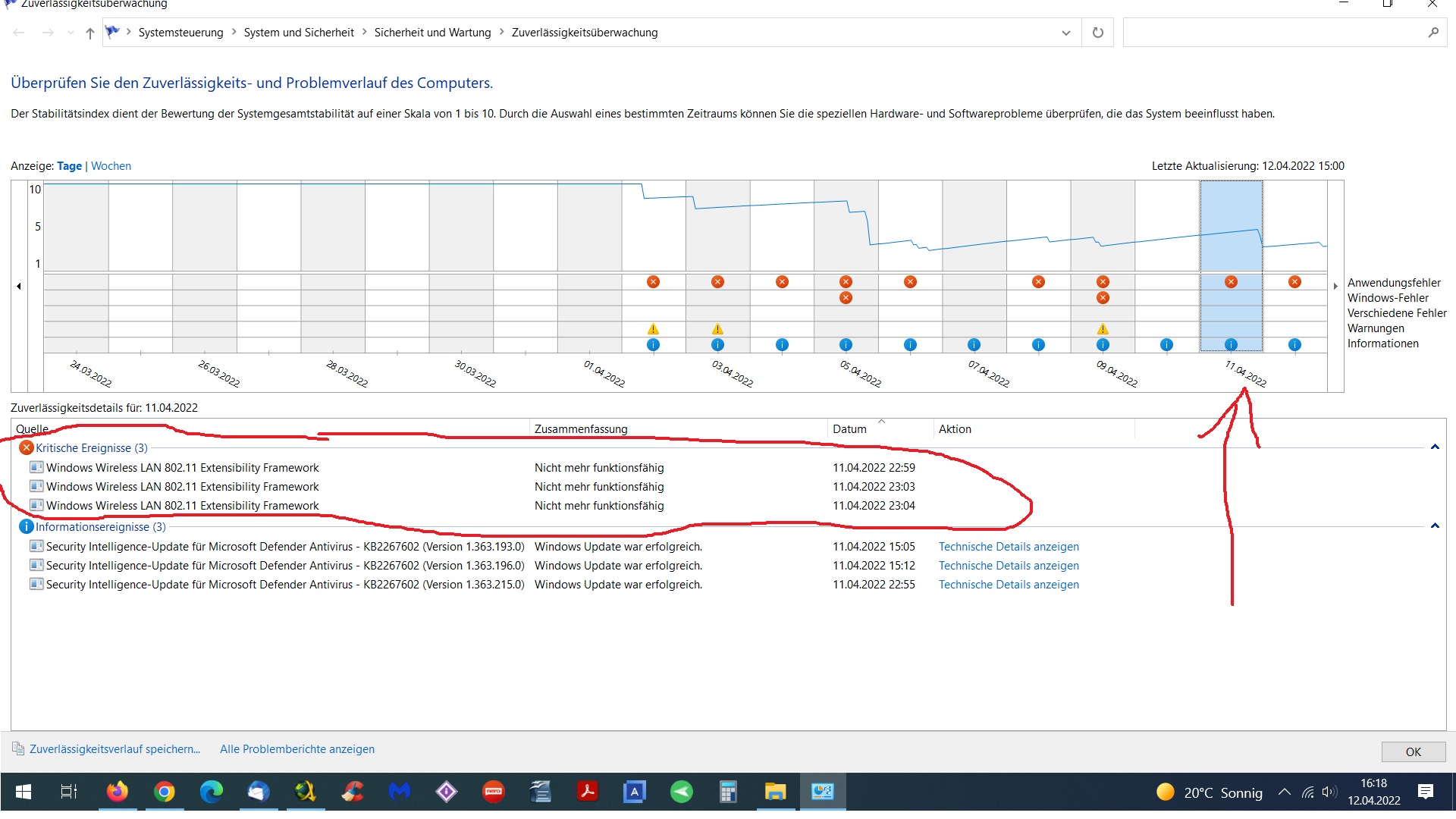 etc. was in deinem Zuverlässigkeitsverlauf Screenshot zu sehen ist.