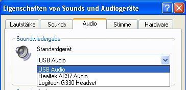 Ich habe mal 2 USB-Sound-Karten angesteckt (G330 Headset und Creative Soundblaster MP3+). Die tauchen dann auf - siehe Bild. Eigentlich sollte dort der SPDIF auch auftauchen.