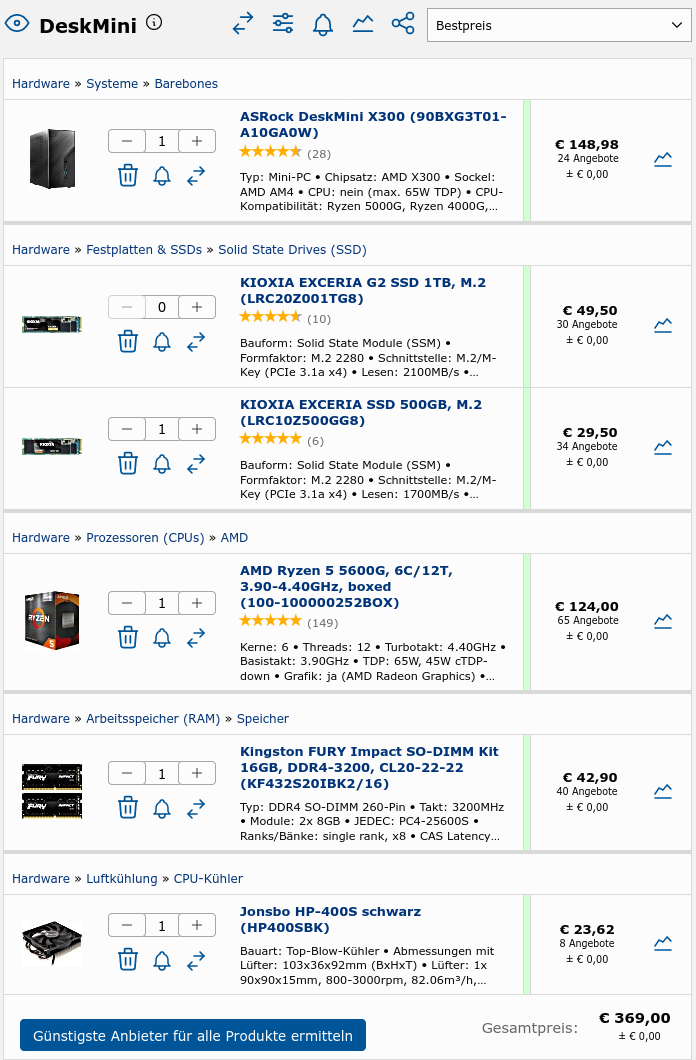 5. Hast du noch einen alten PC, dessen Komponenten teilweise weitergenutzt werden könnten? (Bitte mit Links zu den Spezifikationen beim Hersteller oder Preisvergleich!)