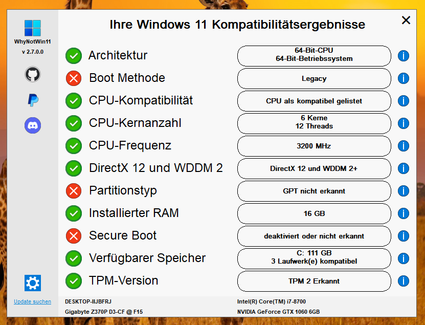 ich hoffe ich bin hier richtig. Da der Support für Windows 10 ja nun endgütig eingestellt wird/wurde, muss ich nun auch auf Windows 11 upgraden.