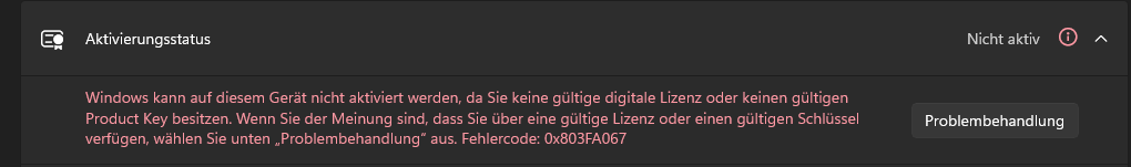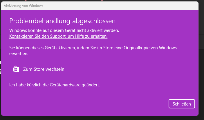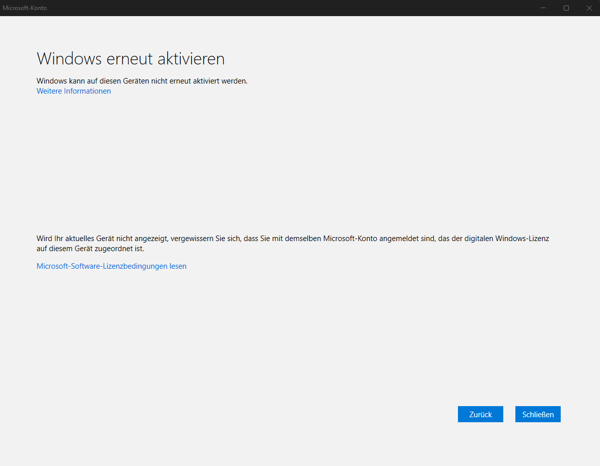W11 ist installiert und läuft, jedoch klappt es mit der Aktivierung nicht. Aus irgendeinem Grund scheint die Verknüpfung mit dem Microsoftkonto nicht zur Aktivierung zu führen.