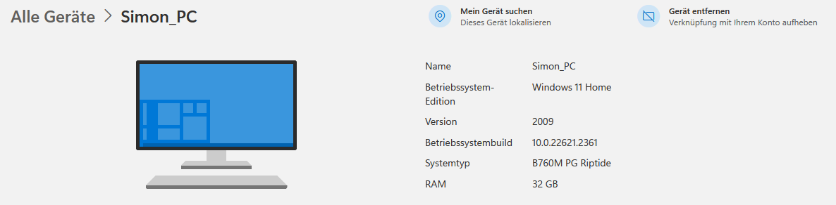 Ich bin angemeldet, erscheine in W11 als Administrator, das neue Gerät erscheint auch in meinem MS-Konto.