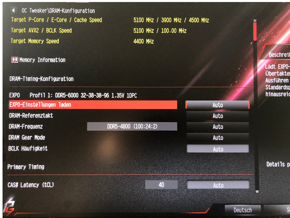 Passt das so (screenshot), oder soll ich da Profile 1 aktivieren?dattl schrieb:XMP Profil laden, damit deine RAM mit vollem Speed laufen.