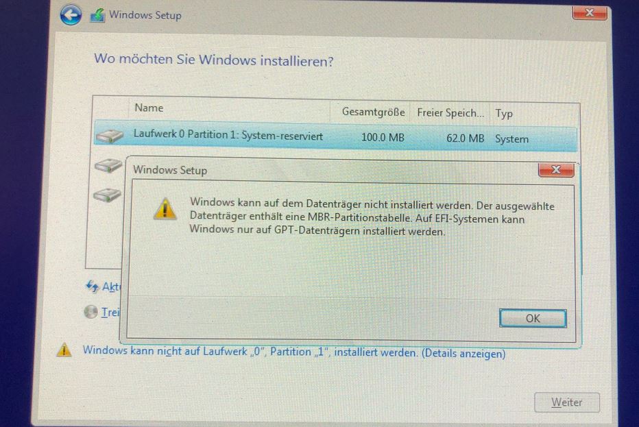 jetzt bin ich einen Schritt weiter. Kann aber leider nicht auf der gewünschten Partition 2 installieren.