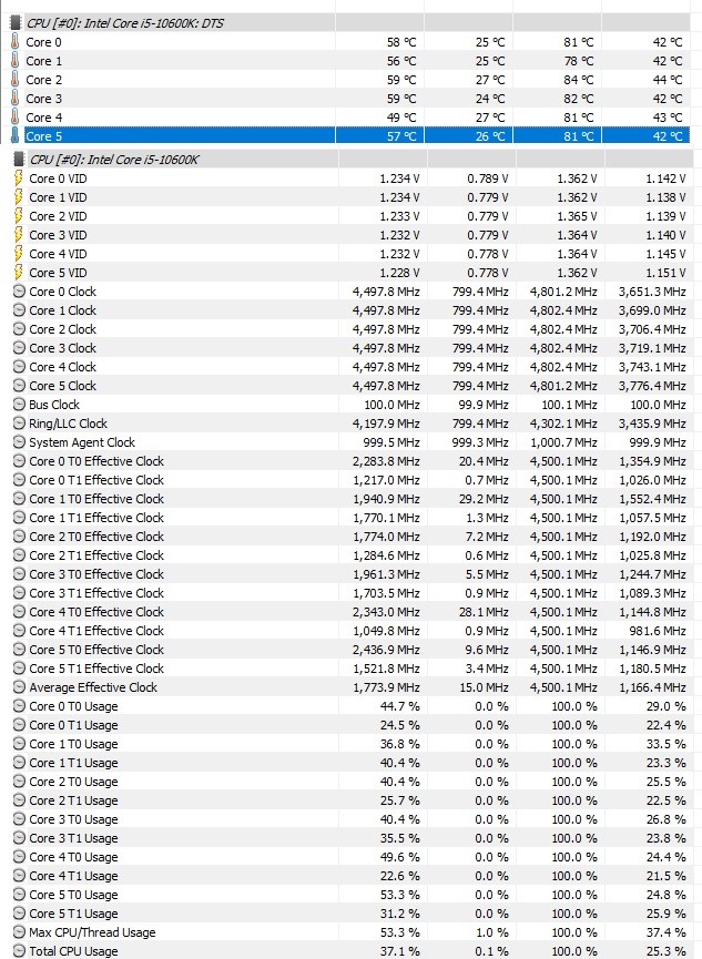 Edit Screenshots bei mittlerer Last im Windows, Spiel wird per Steam heruntergeladen. Temps springen von 27C° niedrigster Wert auf bis ca. 58C° Auslastung bis 50%.