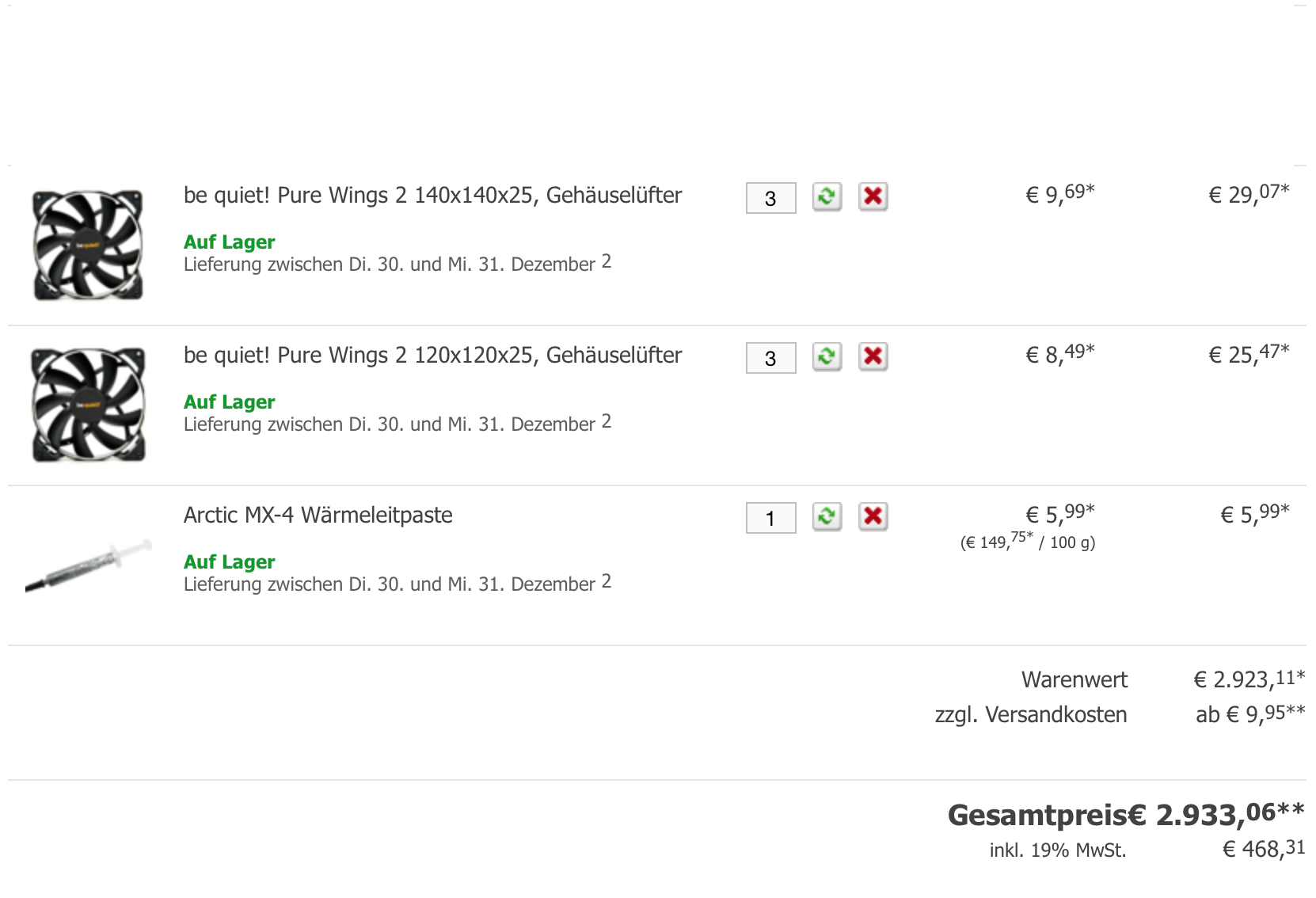 Gehäuse Lüfter: Standard Coolermaster Gehäuse Lüfter BeQuiet Pure Wings
