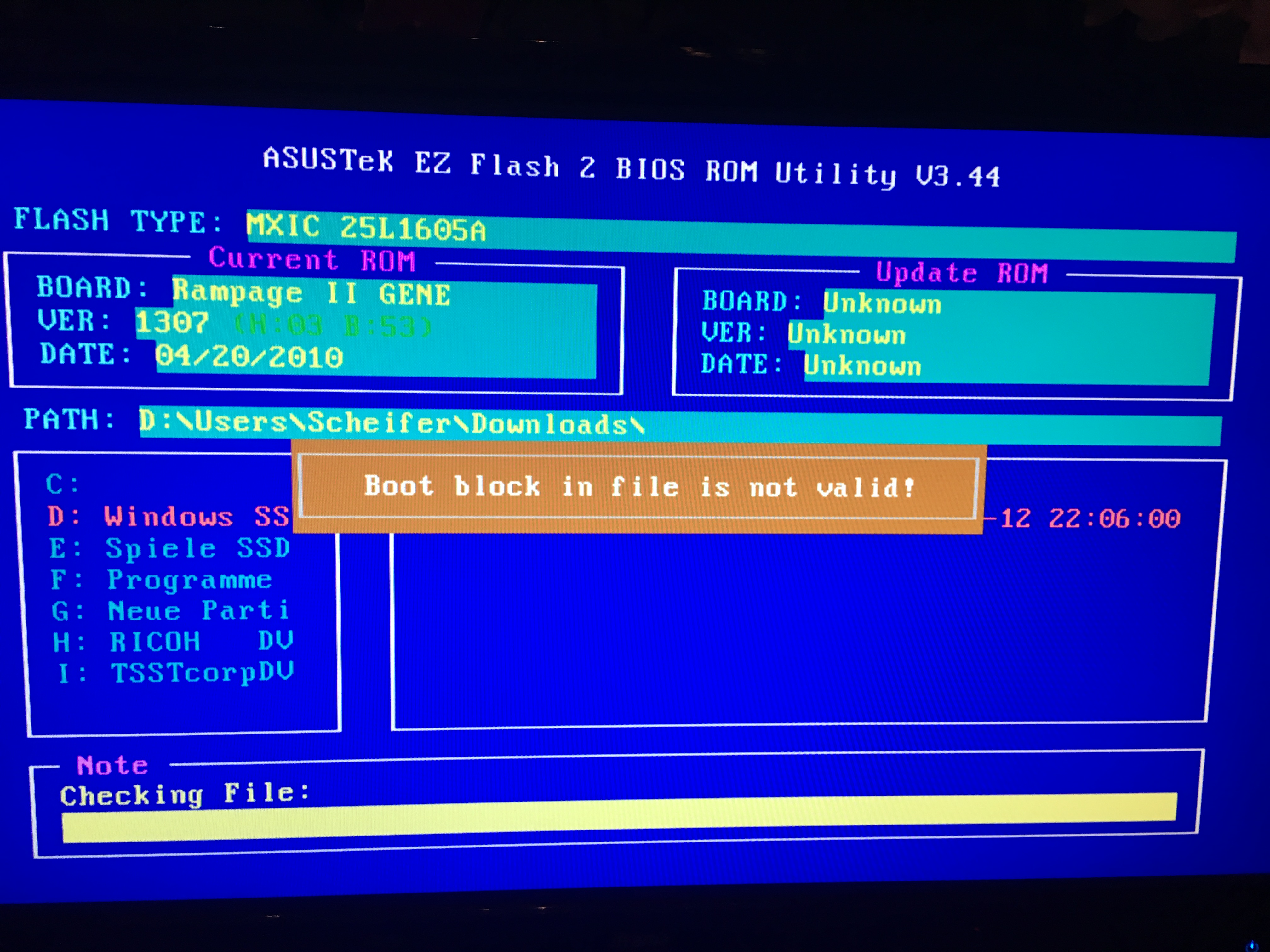 Ich habe die .zip entpackt und die Meldung wie im Screenshot kommt im BIOS.