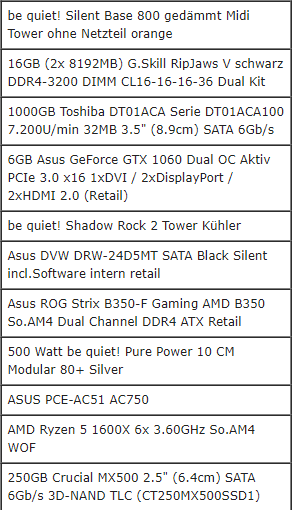 RAM: G.Skill RipJaws V schwarz DDR4-3200 DIMM CL16-16-16-36 Dual Kit (wird vom allten PC übernommen fals sinnvoll)