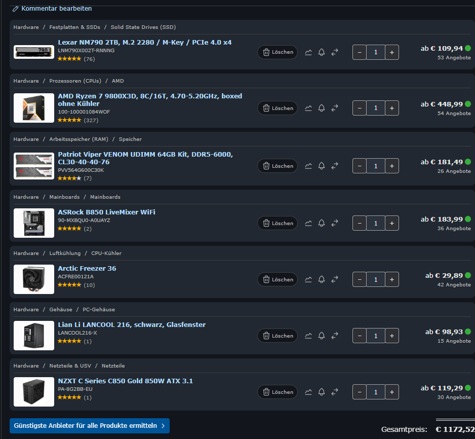 2. Ggf. mehr Lüfter, das ich nie Probleme habe das es sich erwärmt. (wie mit meinem jetzigen) - Weiß nicht genau ob das in dem Screenshot im Anhang genügt.