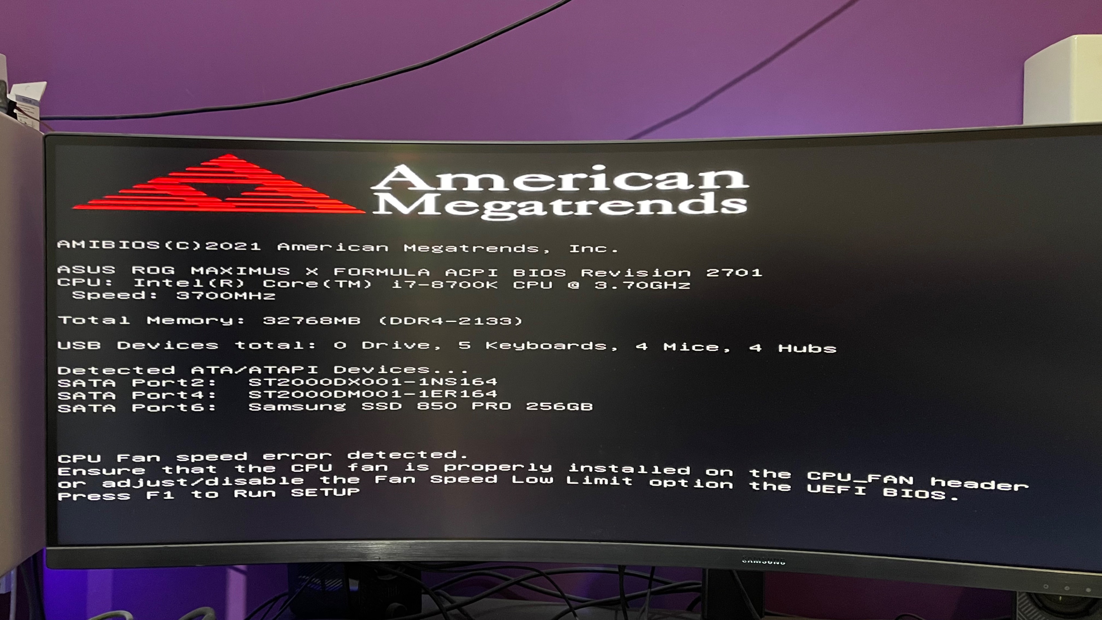 In der Biosmeldung steht doch das es ein Problem mit dem CPU Kühler ( Wasserkühlung ) gibt.