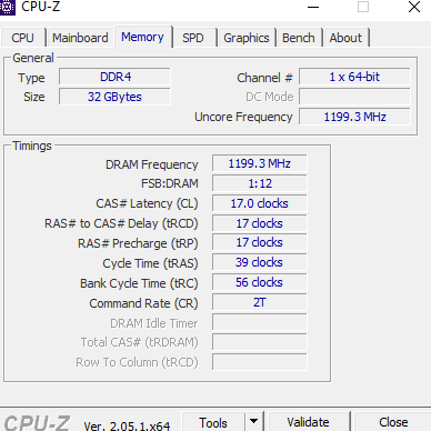 - Arbeitsspeicher (RAM): G skill 32,0GB Single-Channel DDR4 1199MHz