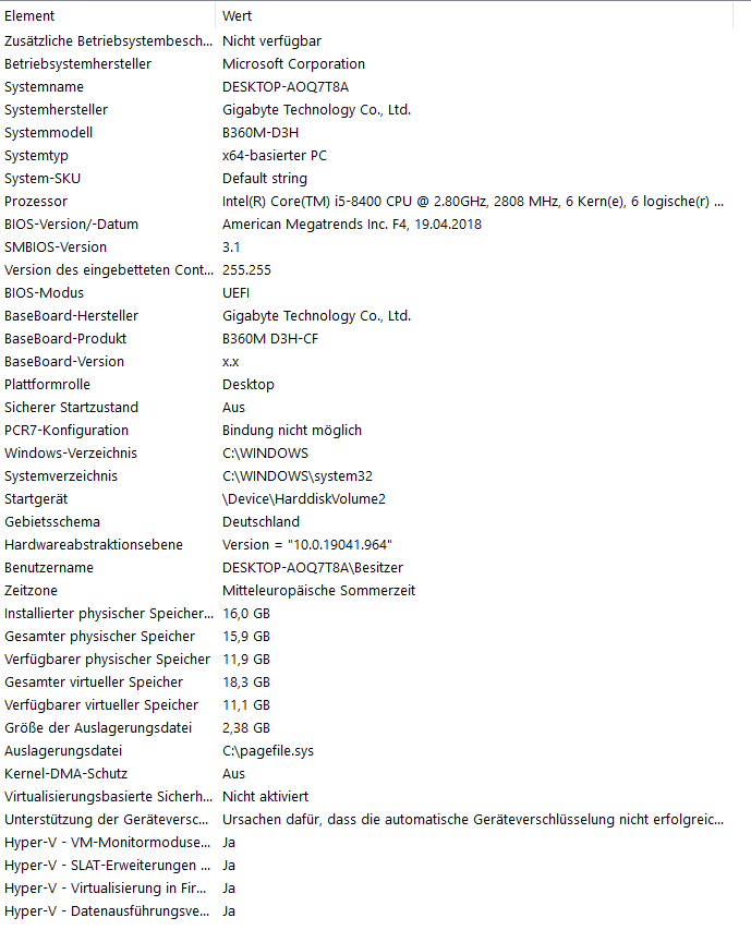 - Prozessor (CPU): Intel Core i5 8400, 2,80GHz 6 Cores
