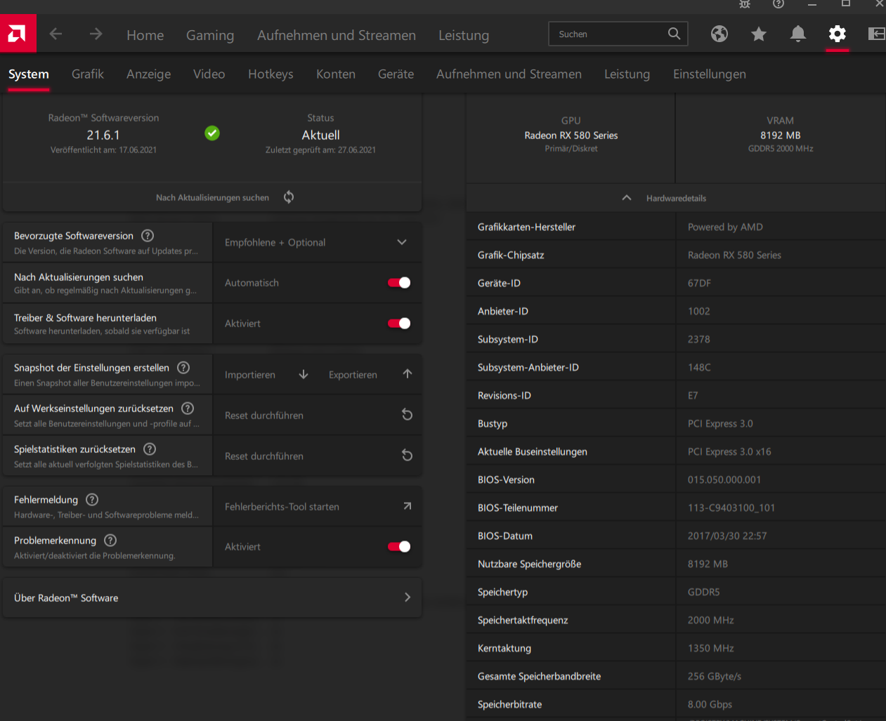 - Grafikkarte: Radeon RX 580