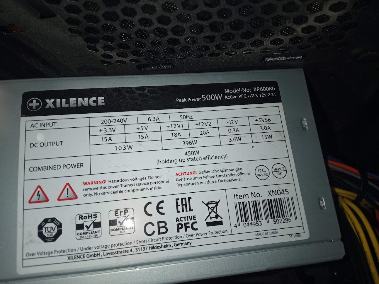- Netzteil(Genaue Bezeichnung): S/N 045X9260001216 (Hab nur die Nummer gefunden)