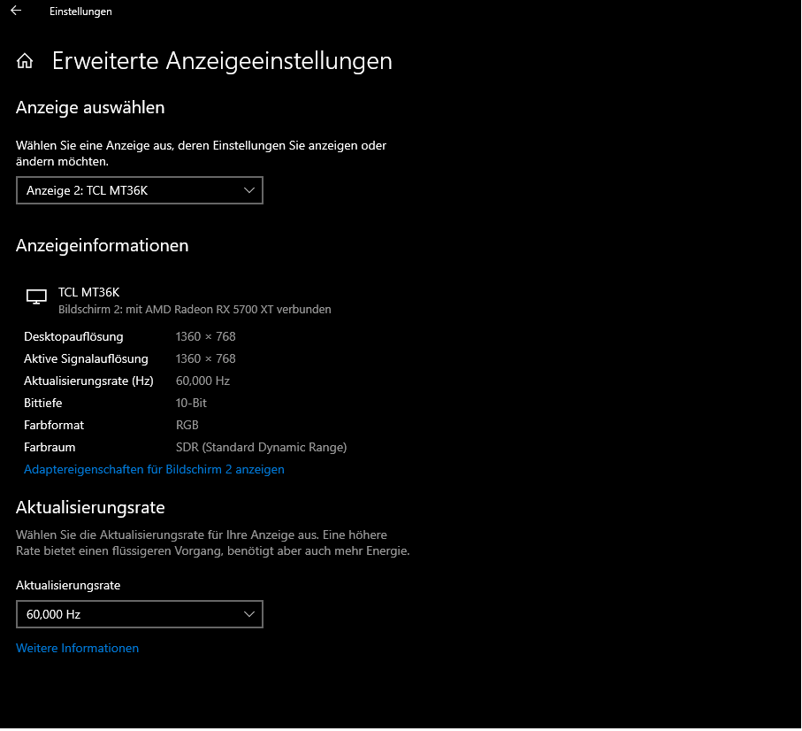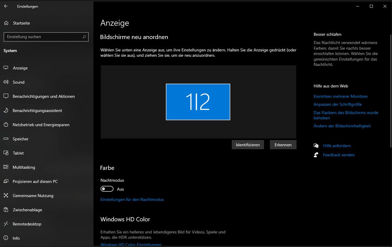 Anbei zwei Screenshots aus den Anzeigeeinstellungen.