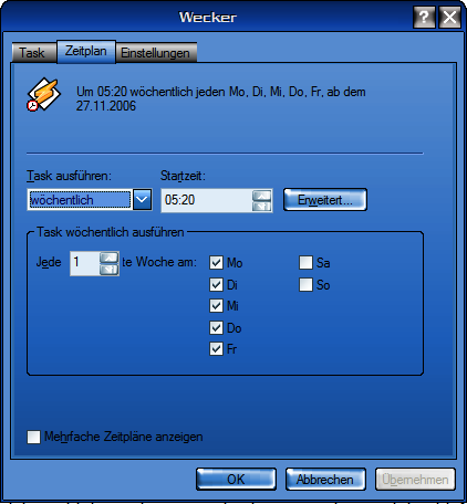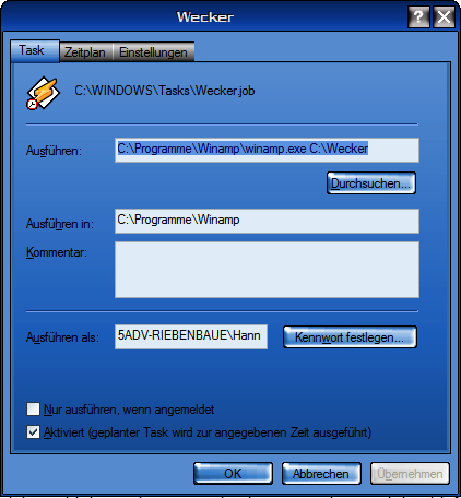 Du musst nur einen Task im Taskplaner anlegen, der deinen Player startet. Als Argument übergibst du zusätzlich noch den Pfad zur Datei/Playlist bzw. zum Ordner, der abgespielt werden soll. Du musst auch noch "Computer zum Ausführen des Tasks reaktivieren" aktivieren. Dann darfst du den Rechner nicht ganz herunterfahren - mit dem Ruhezustand funktioniert es.