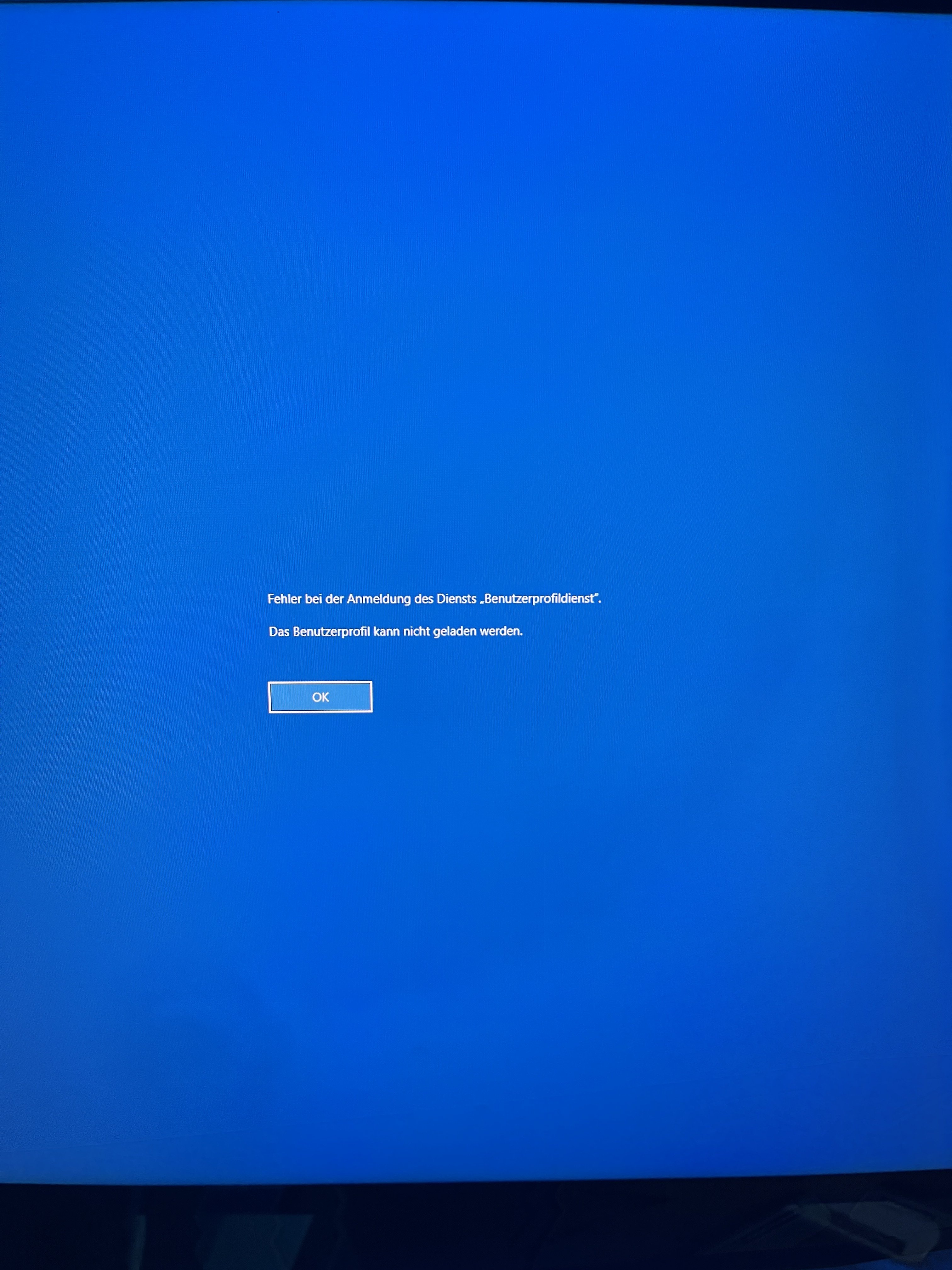 Wenn ich den PC hoch fahre, kommt so etwas wie Benutzerprofil nicht vorhanden oder so ähnlich.