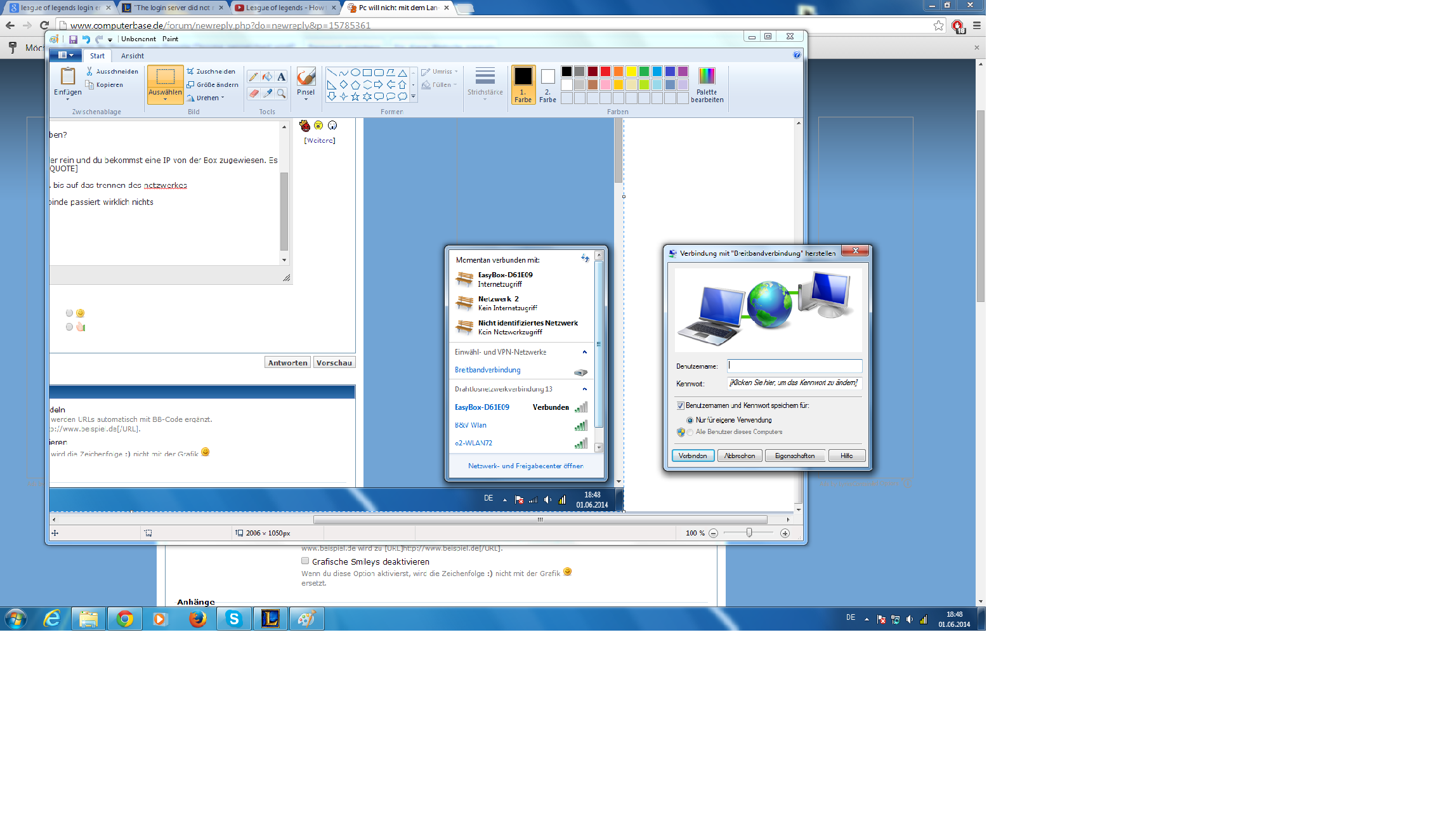 DANACH ging nichts mehr. Als ich dann mein Lan mit der Breitbanverbindung verbinden wollte steht dass ich einen benutzername und kennwort eingeben muss